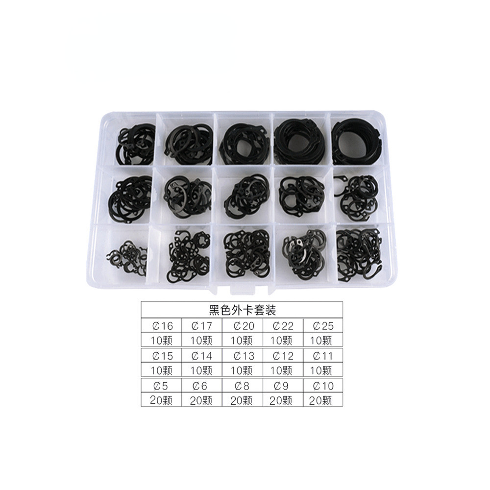 [XJK] 304 Stainless Steel C-Shaped Circlip Black Elastic Circlip Outer Circlip E-Shaped Card Set Plastic Box Set