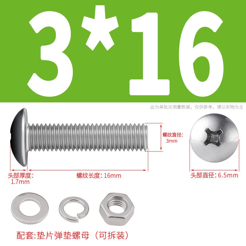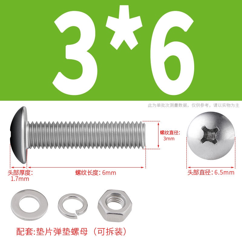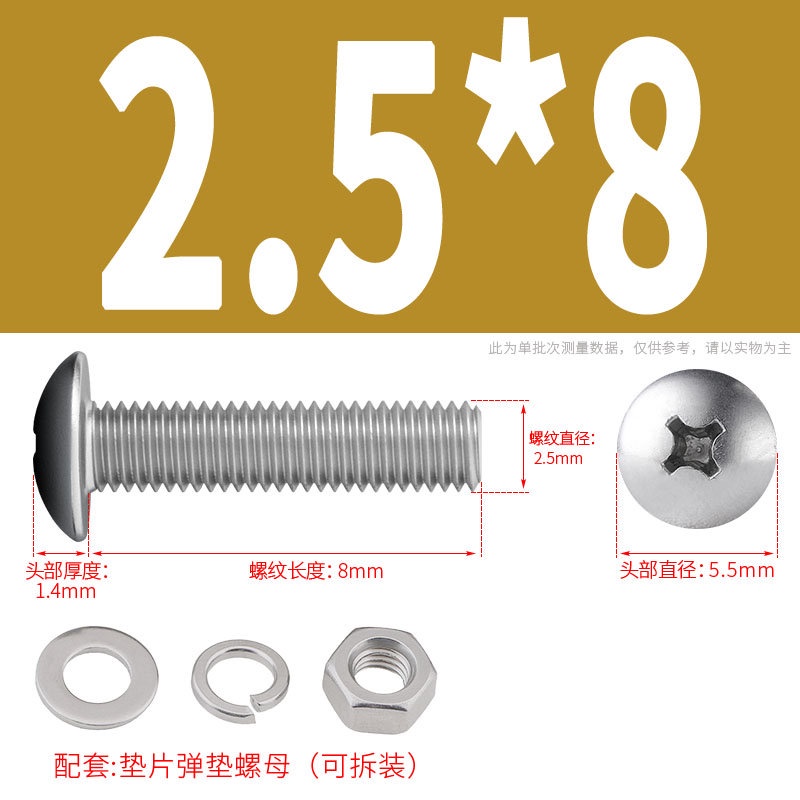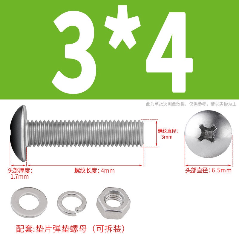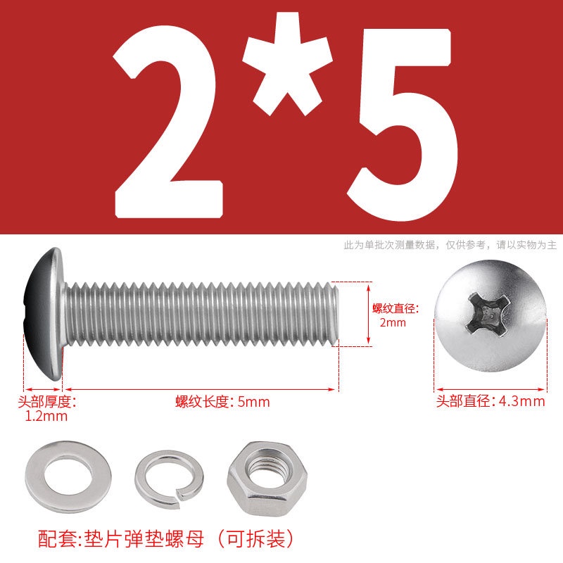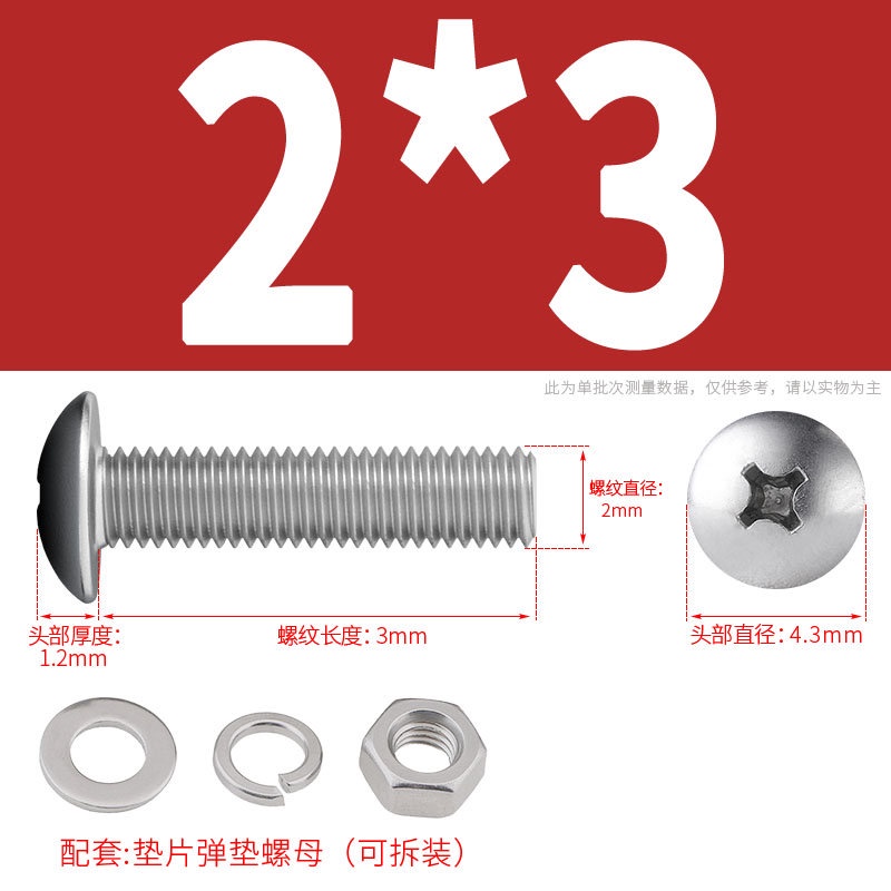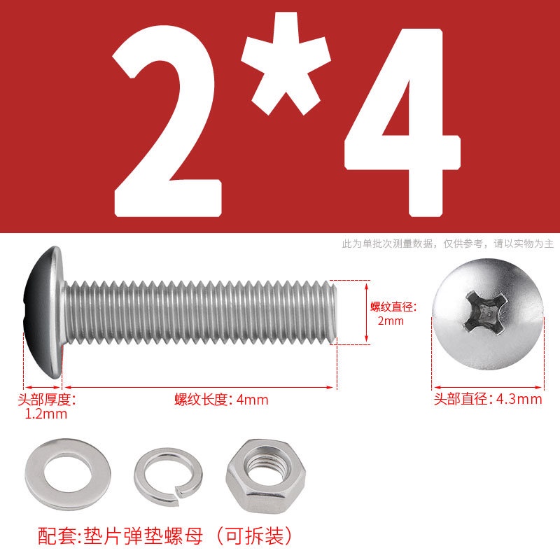 [XNY] 304 Stainless Steel Phillips Large Flat Head Screw Nut Nut Set Umbrella Head Flat Bolt Round Head Flat Gasket Pop-up Gasket Combination M2/M2.5/M3/M4