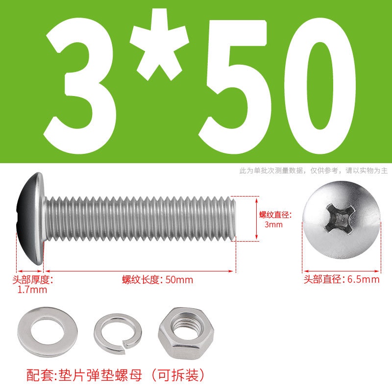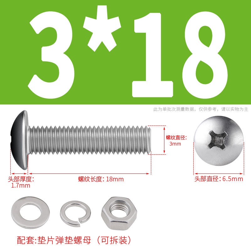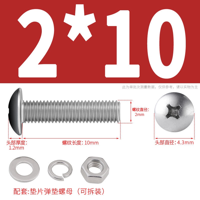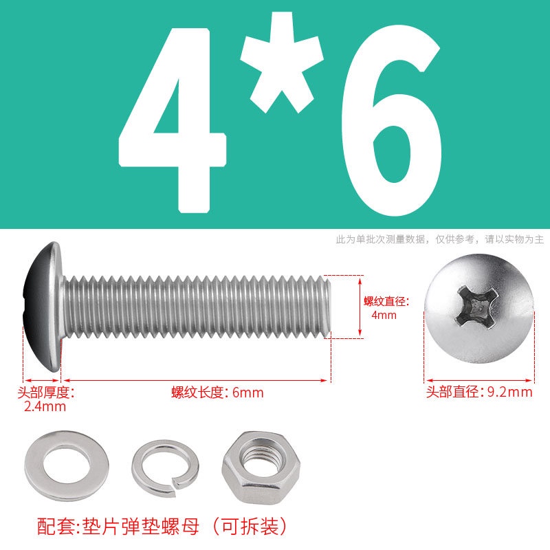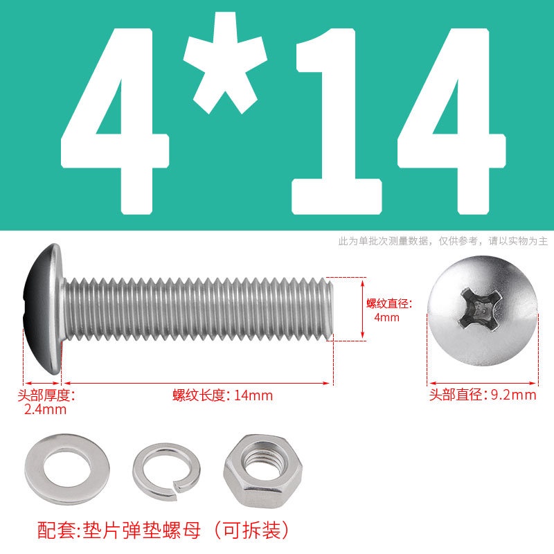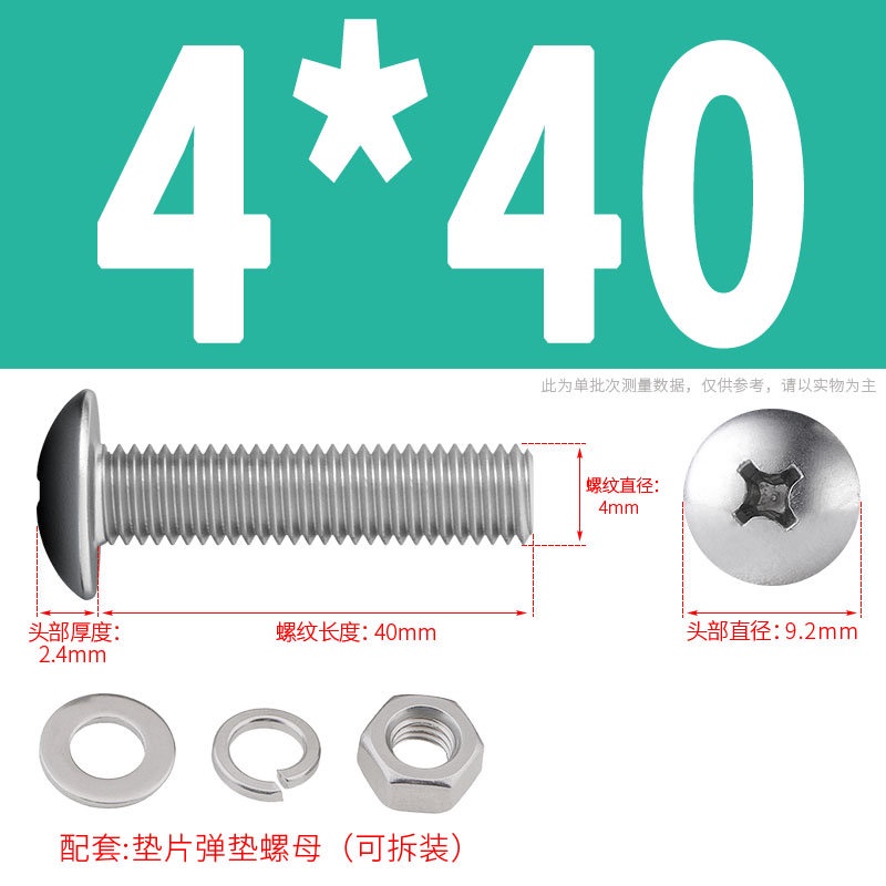 [XNY] 304 Stainless Steel Phillips Large Flat Head Screw Nut Nut Set Umbrella Head Flat Bolt Round Head Flat Gasket Pop-up Gasket Combination M2/M2.5/M3/M4