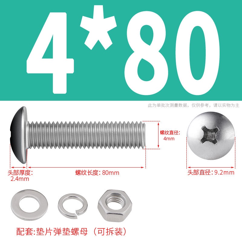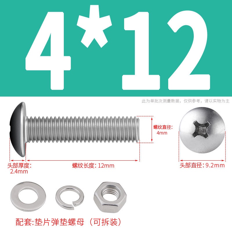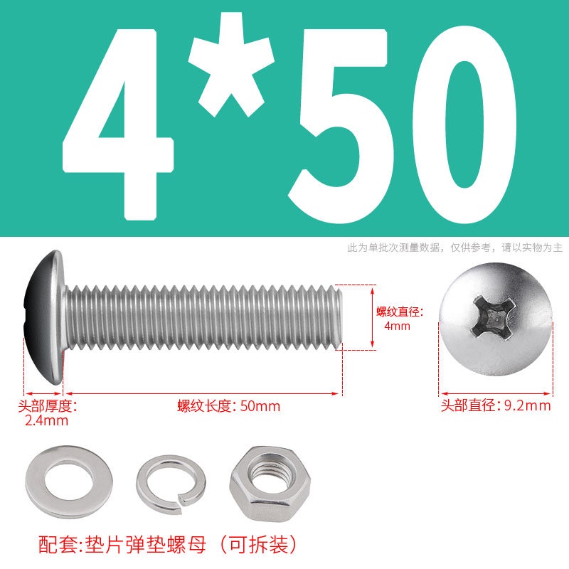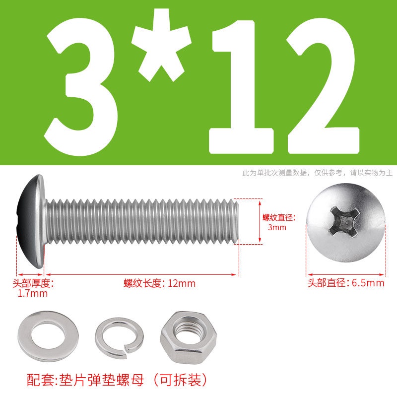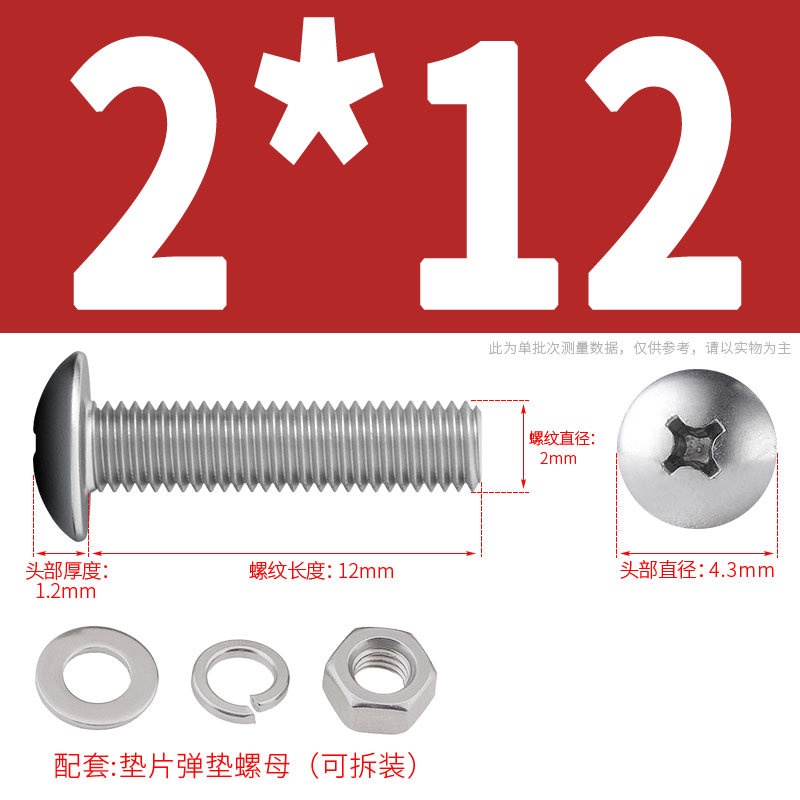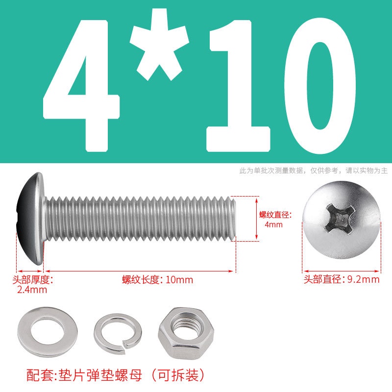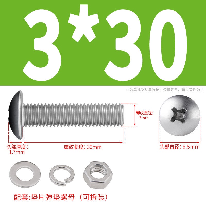 [XNY] 304 Stainless Steel Phillips Large Flat Head Screw Nut Nut Set Umbrella Head Flat Bolt Round Head Flat Gasket Pop-up Gasket Combination M2/M2.5/M3/M4