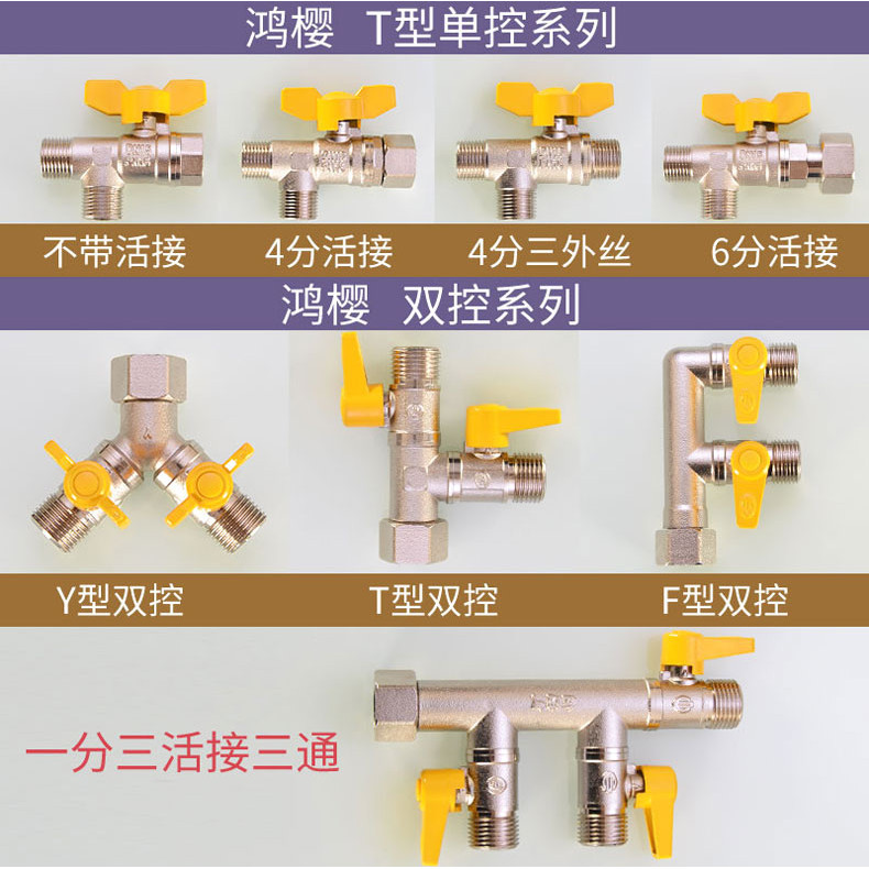 [XNY] Diverter Valve Three-way One-in Two-out Car Wash Water Pipe Washing Machine 4-point Live Connection Copper Ball Valve Faucet Water Separator