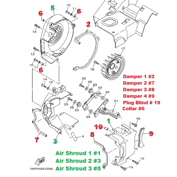 > YAMAHA GENUINE Air Shroud 1,2,3 "Air Cooled" MIO SPORTY/MIO SOULTY/NOUVO/FINO