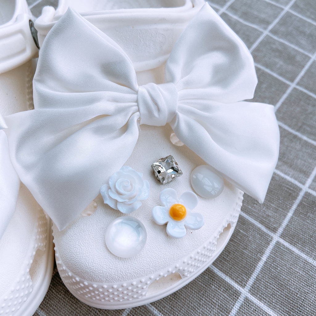 clog slipper sticker Charm Princess Bow Set Button Shoes Charm-clog /slipper sticker /Button clog /Charm/DIY-Elegant White Set