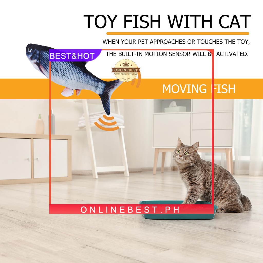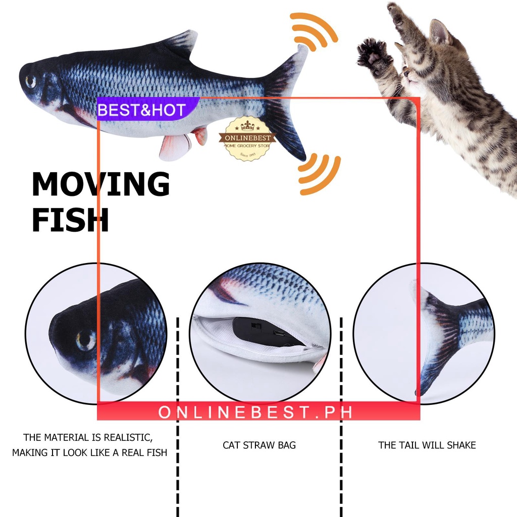 [onlinebest.ph] Electric Floppy Fish Cat Toy, Realistic Flopping Wiggle Catnip Kicker Fish Toys