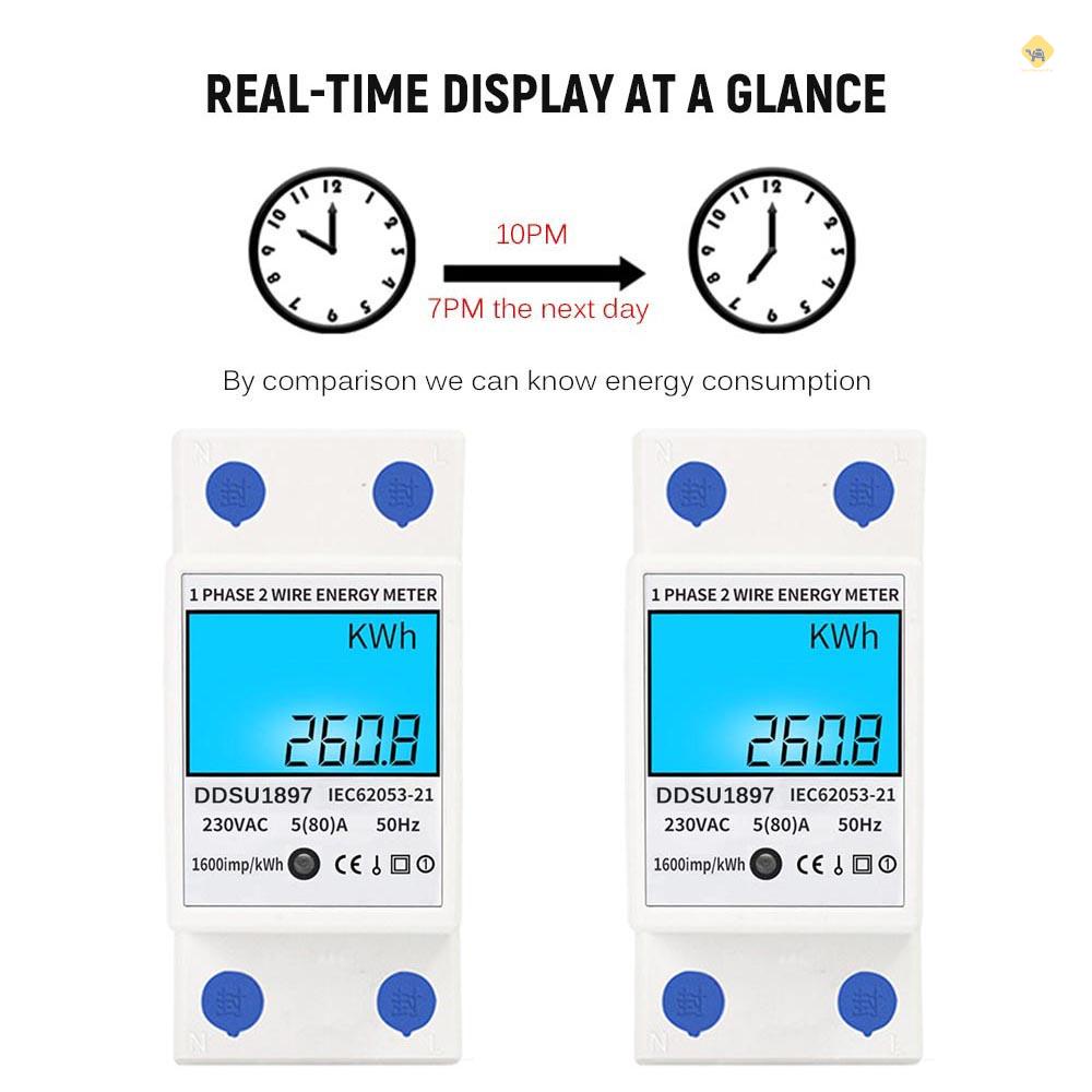 {sptfph}Digital Electric Energy Meter Single Phase DIN Rail Electricity Meter One Phase Two Wire Multifunction Electrical Meter