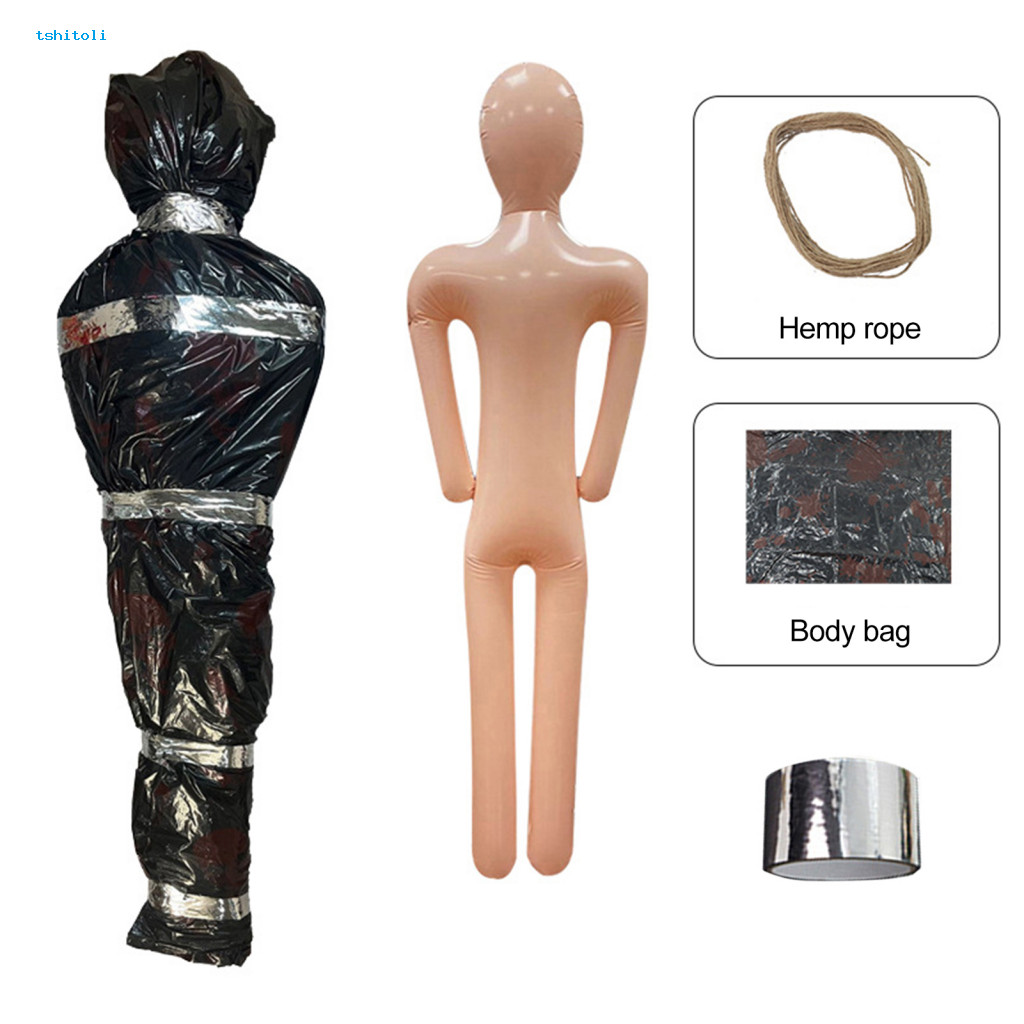 {tshitoli} Inflatable Human Body Model Indoor Outdoor Halloween Decor Creepy Halloween Hanging Corpse Prop for Indoor Outdoor Haunted House Decor Scary Fake Dead Body in Bag 60 Inc
