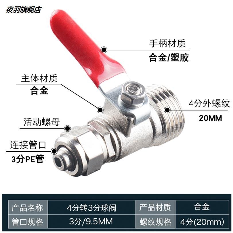 . Water purifier water inlet three-way 2-point 3-point faucet water pipe copper three-way ball valve