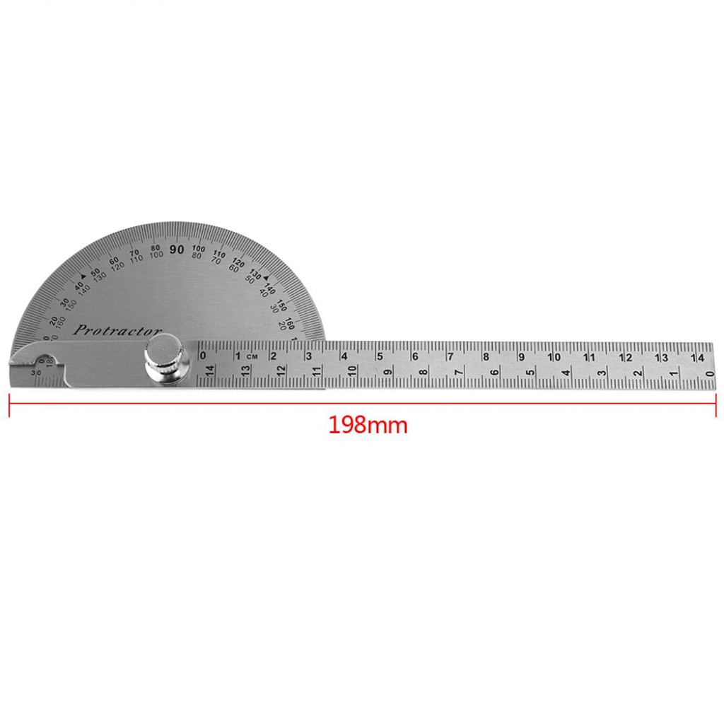 0-180 Degree 90 x 150mm Stainless Steel Adjustable Angle Ruler with 145mm Round Head Rotary Protractor and Adjustable Nut for Industrial Measurement