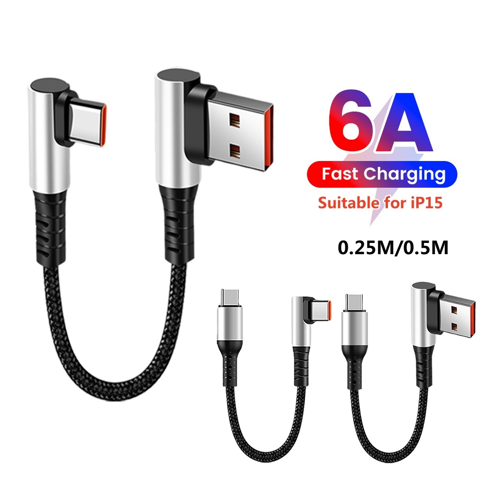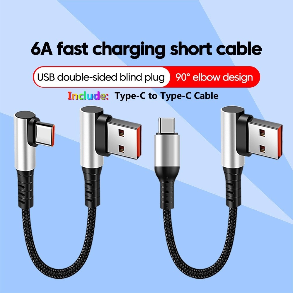 0.25m/0.5m Short Elbow Type C Charging Cable Car Super Fast Charging Data Cable Power Bank Mobile Game Cable