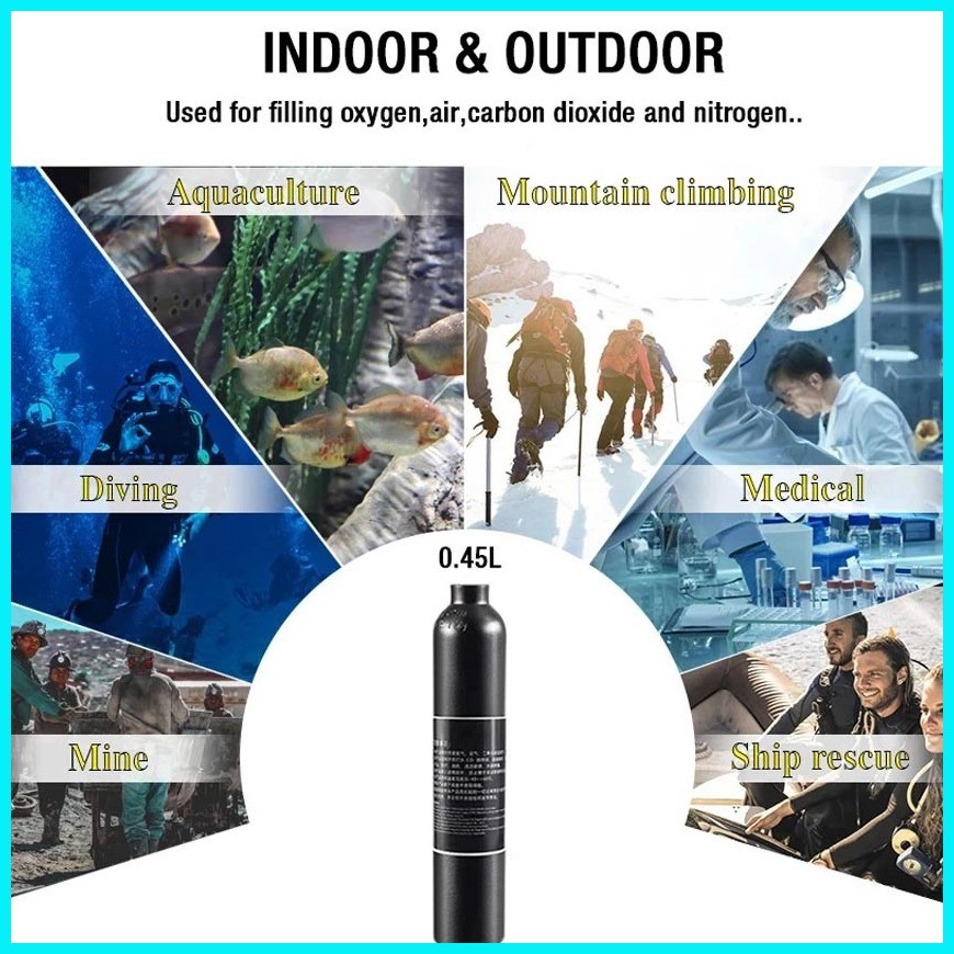 0.45L PCP Air Tank 4500psi HPA Aluminum c02 Tank M18*1.5 Thread High Pressure For Paintball Diving
