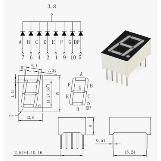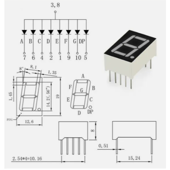 0.56 inch 7 Segment LED Display Red Color 1 Digit or 2 Digits Common Cathode Common Anode CC CA