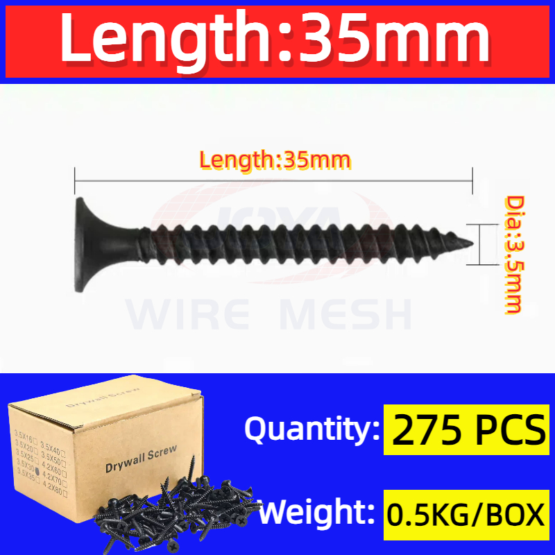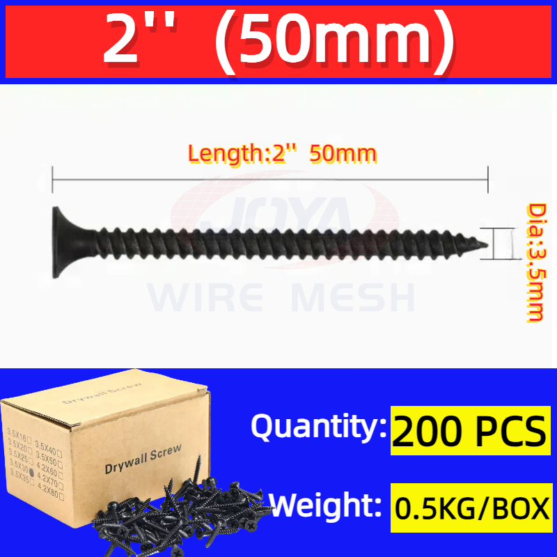 0.5KG Per Box(520Pcs) Black Screw for wood and metal 1inch to 3inch Flat Head Gysum Screws