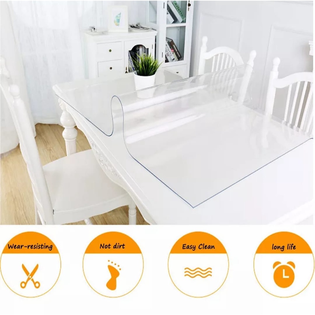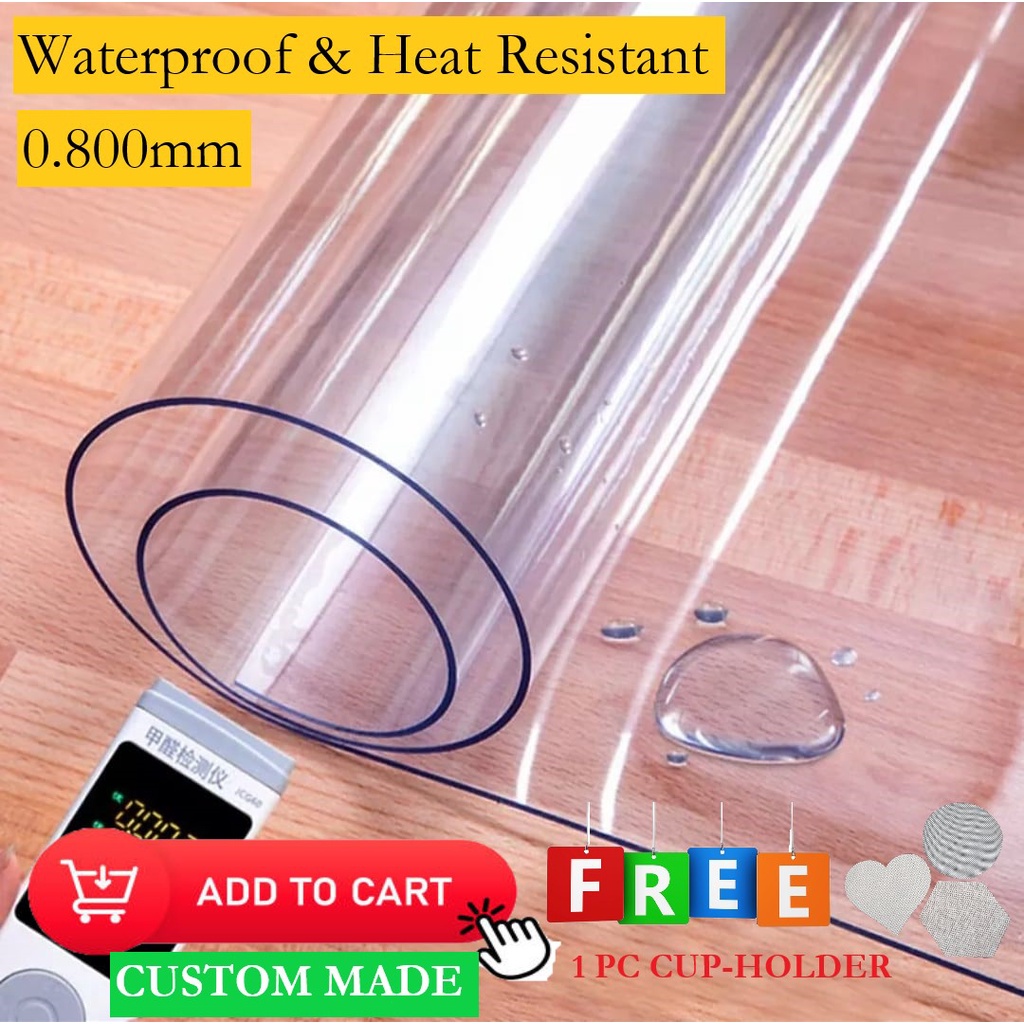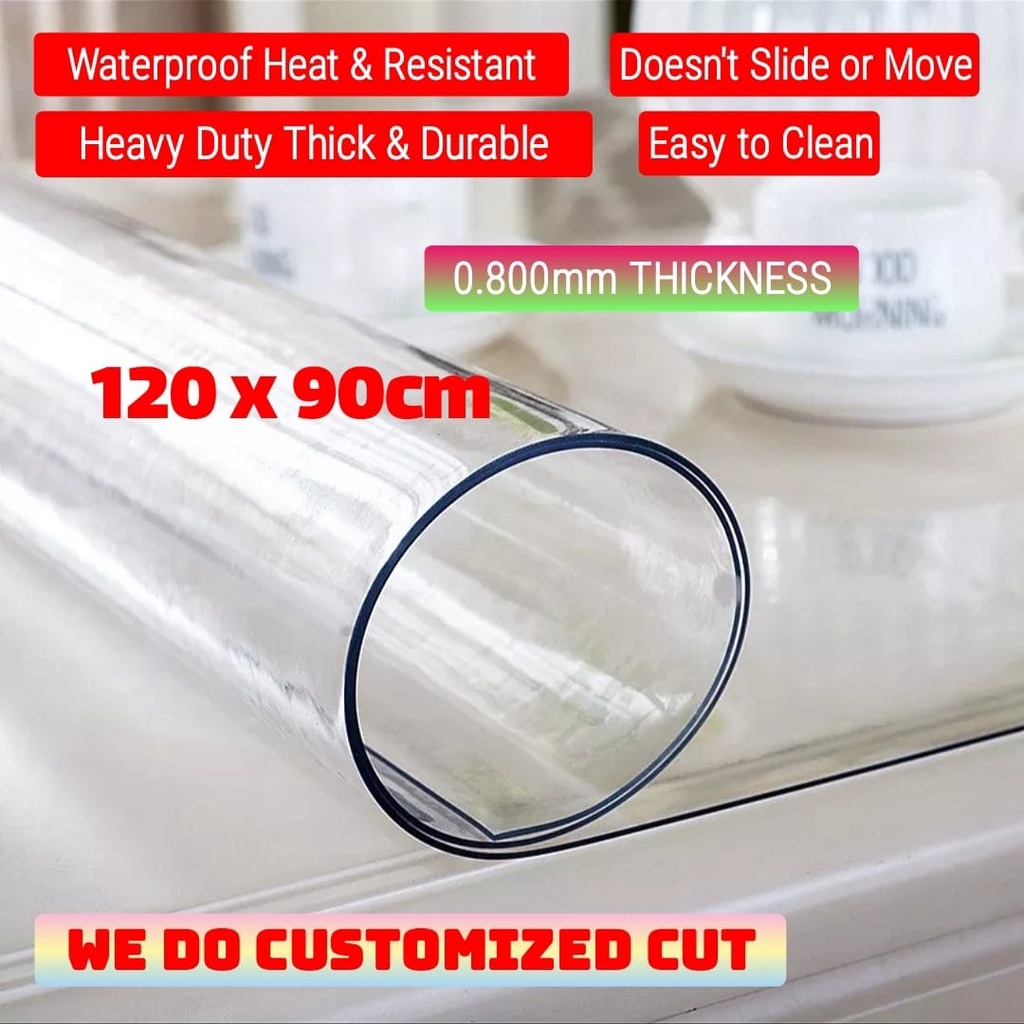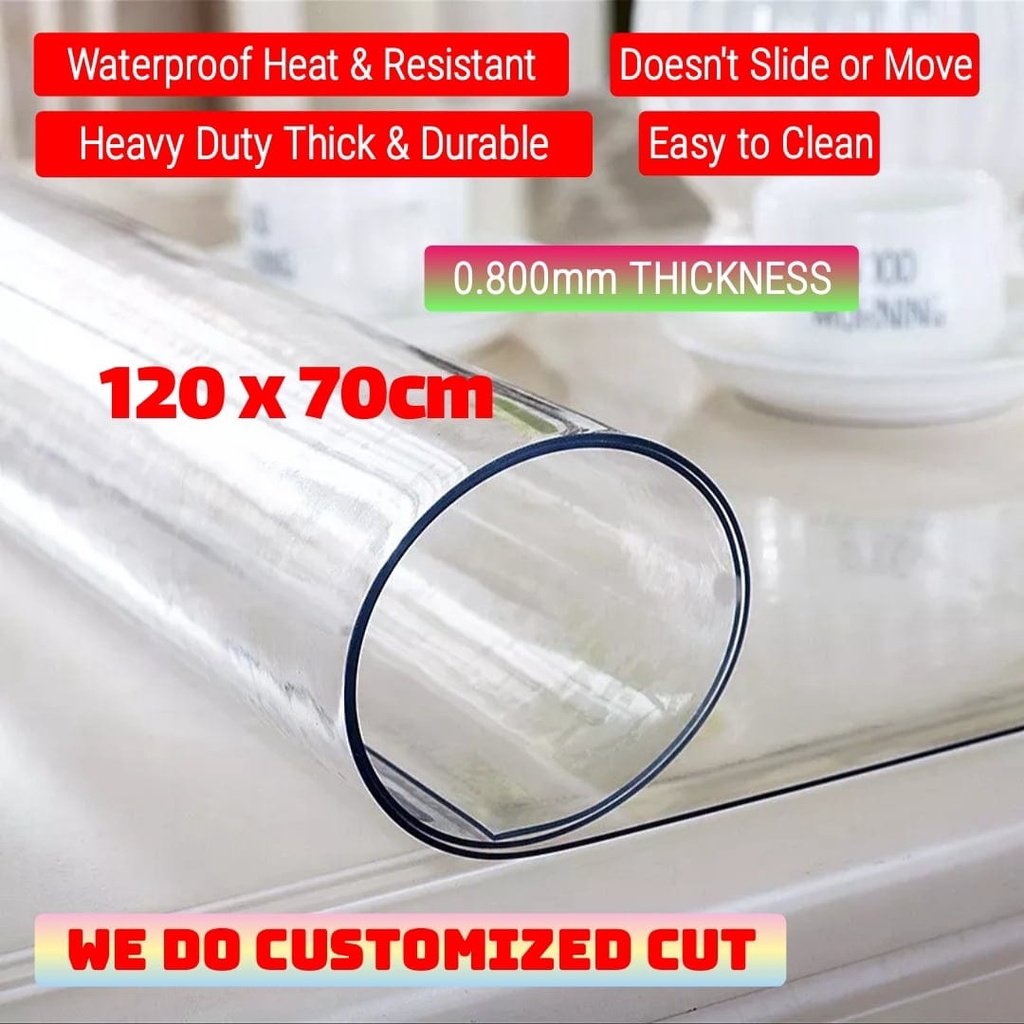 0.800mm THICK Clear Plastic Cover PVC Heat Resistant TableTop Protector Customize for Kitchen Dining