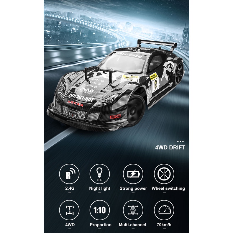 1:10 4WD Shock Absorber Remote Control Car 70km/h High Speed Drift RC Car2.4G Remote Control Off-road Vehicle Boy Toy Gift