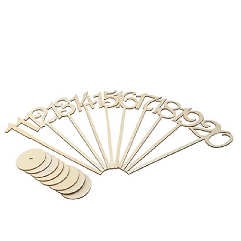 1-10 Numbers Wooden Table Stick Cards Set with Base Wedding Party Decor Stand