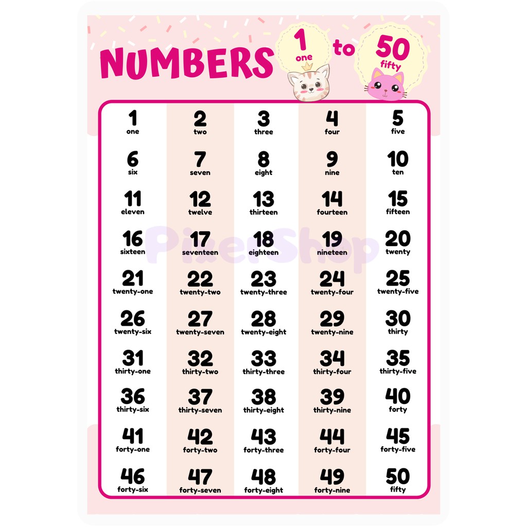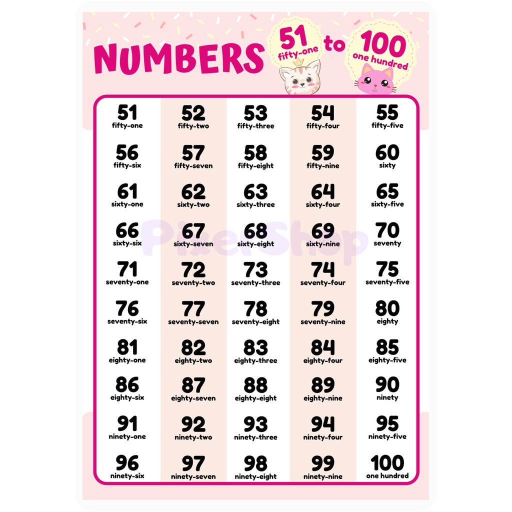 1-100 Number Word Chart/ Laminated Chart/ Educational Poster