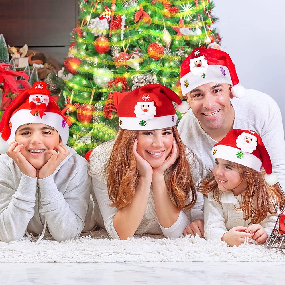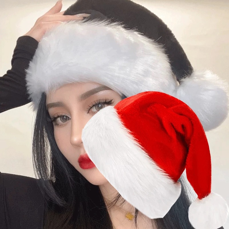 1/10Pcs Red Christmas Hat for Adult Kids Plush Santa Claus Xmas Hat Cap Warm Xmas Cap for Merry Christmas Party New Year Supplies