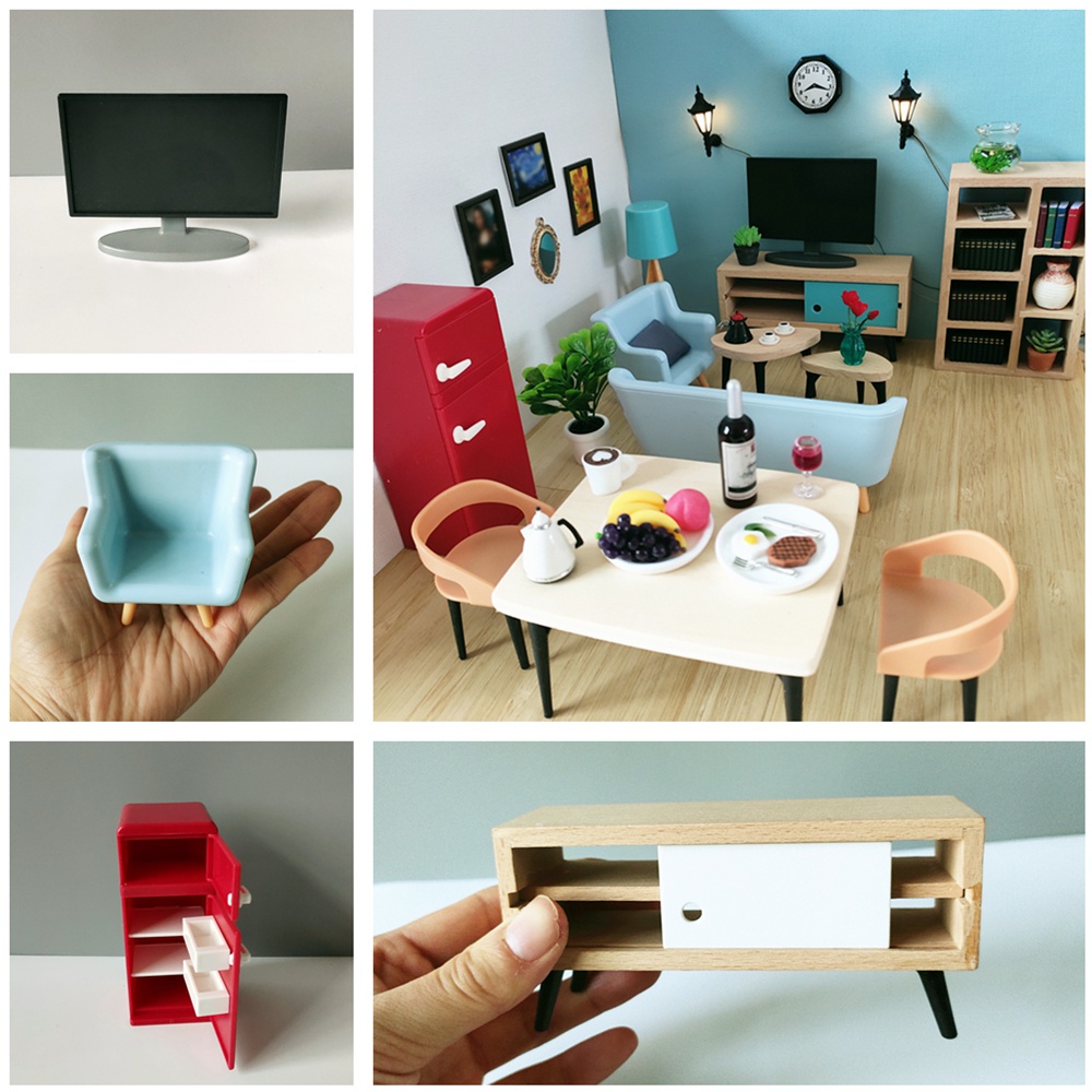 1:12 Dollhouse Furniture Mini TV/Cabinet/Sofa/Fridge/Table/Chair Living Room Nordic Style Modem Dollhouse Miniatures Kids Toy