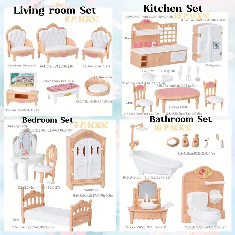 1:12 Scale Dollhouse Furniture Set - Bedroom Living Room Kitchen Bathroom Miniature Accessories Miniature Dollhouse Furniture Birthday Christmas Children's Gift
