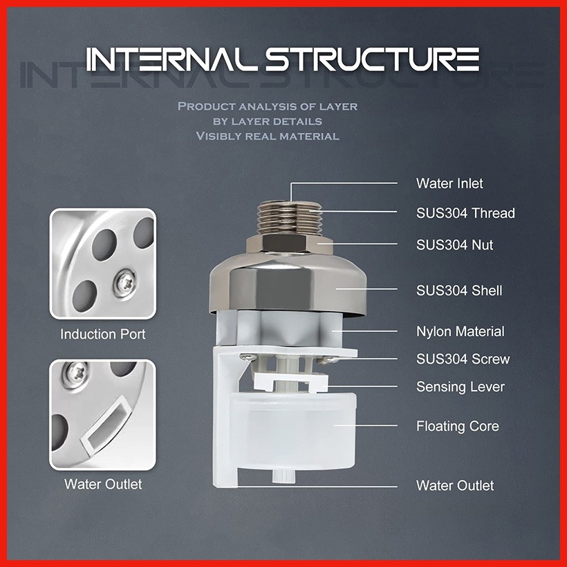 1/2" 3/4'' Auto Fill Shut off Water Tank Float Valve, 304 Stainless Steel Mini Water Float Valve