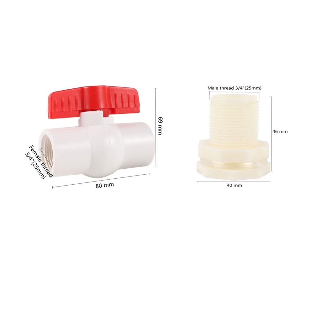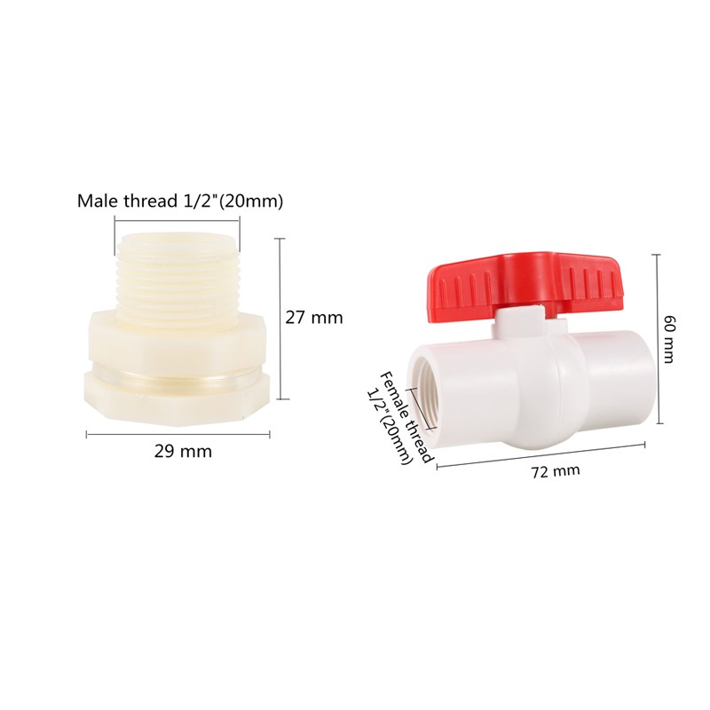 1/2" 3/4" ABS Plastic Water Tank Connector with PVC Ball Valve Fish Tank Aquarium Outlet Bucket Connector Drain Pipe Fitting