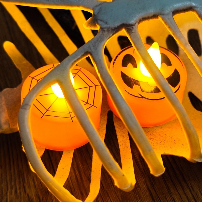 1/2/4Pcs Halloween Pumpkin Candle Lamp - Mini Horror LED Decor Light - Themed Party Atmosphere Lamps - Glowing Halloween Ornament - Reusable Odorless Electronic Candlestick