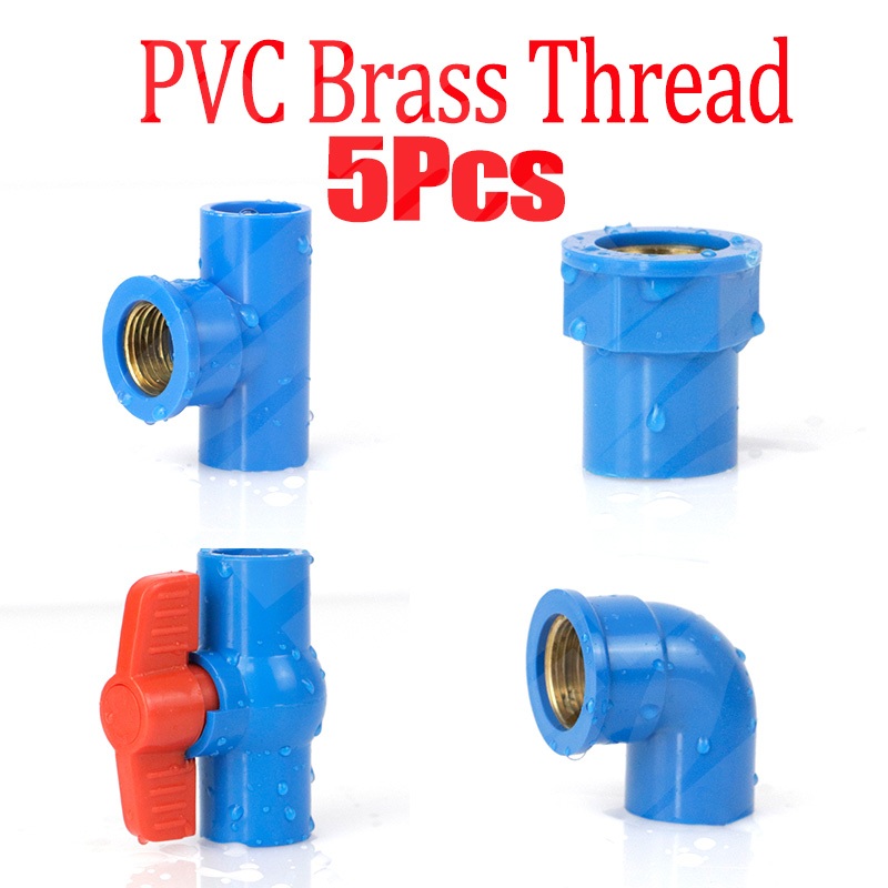 1/2" PVC Pipe Fittings Female Brass Threaded Coupling Tee Elbow for Garden Water Pipe Joints