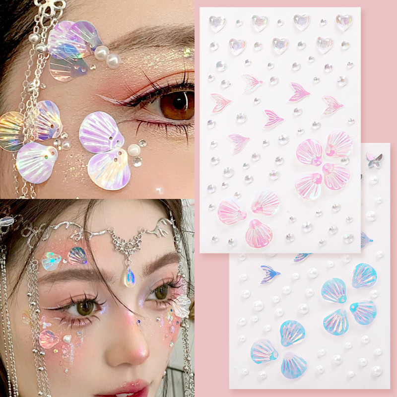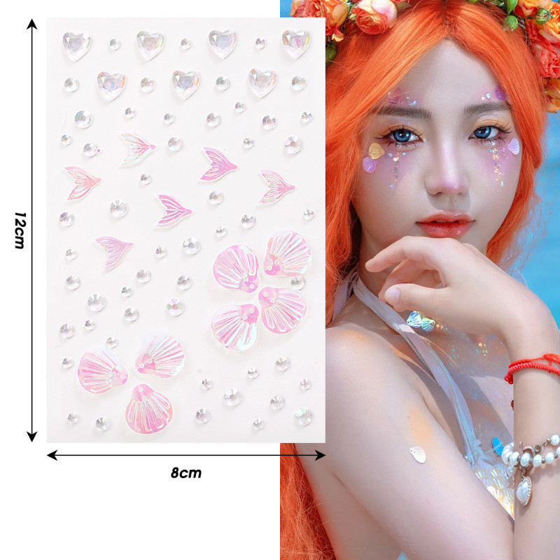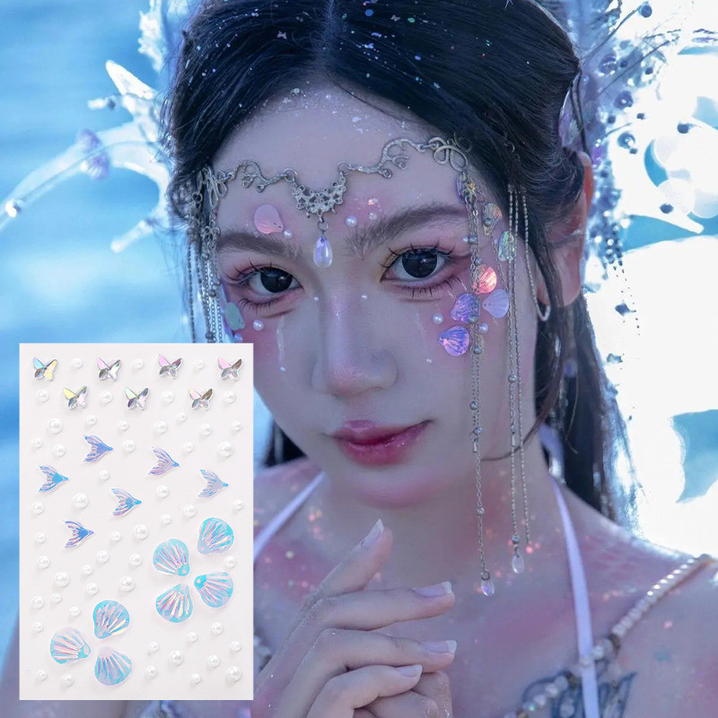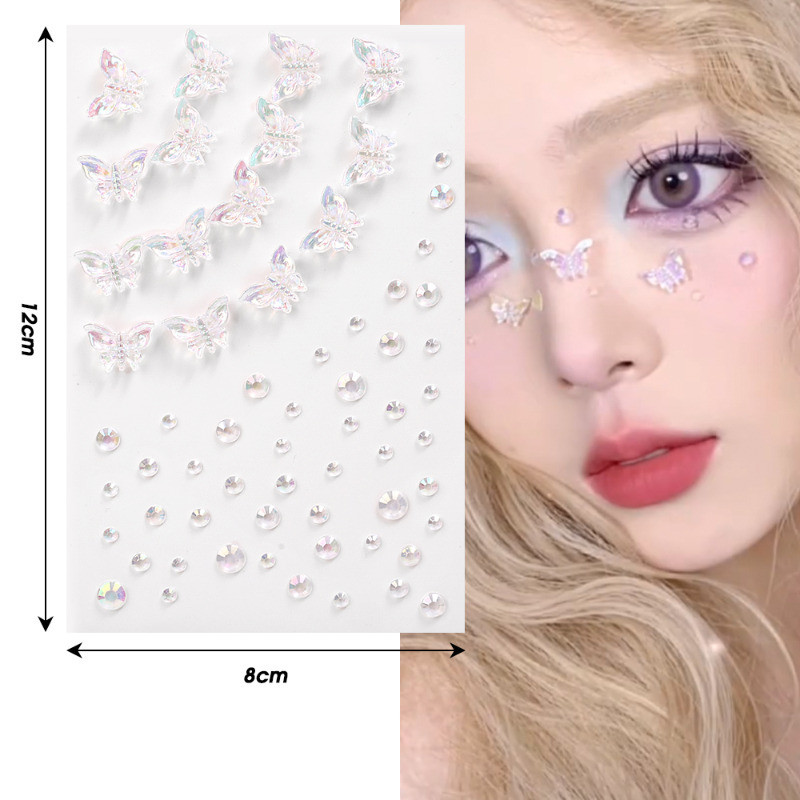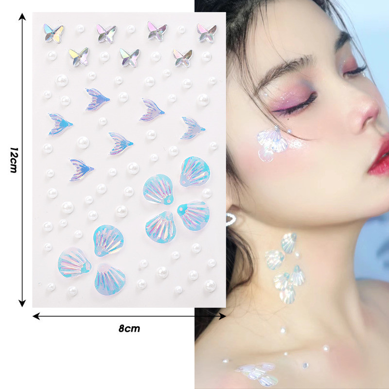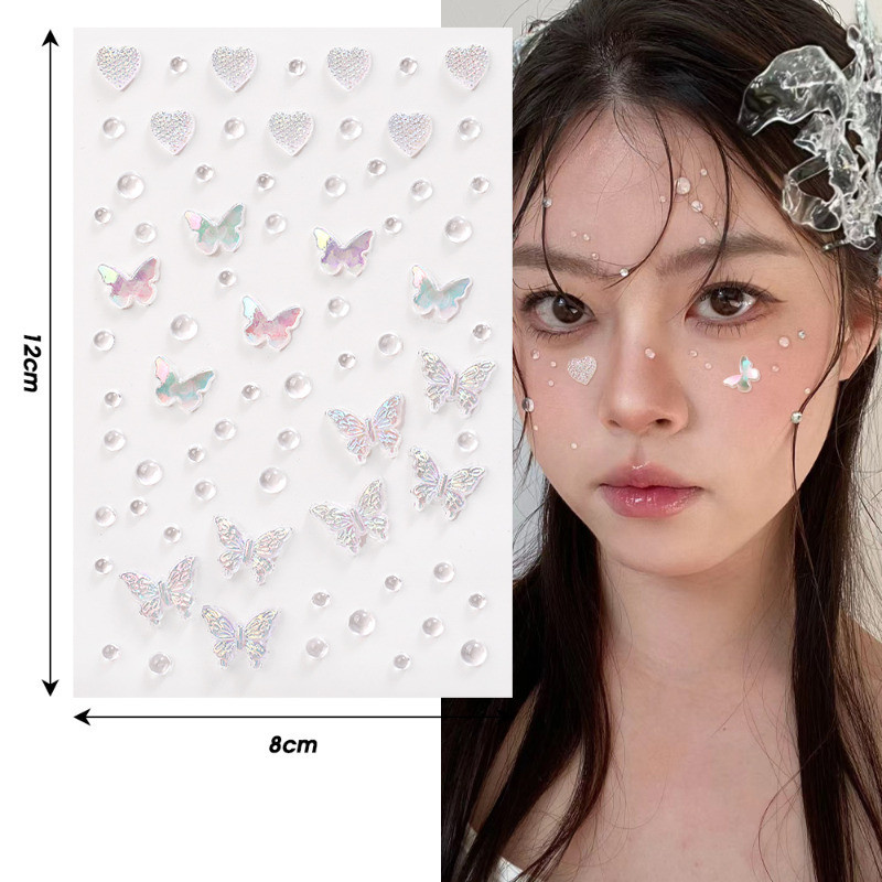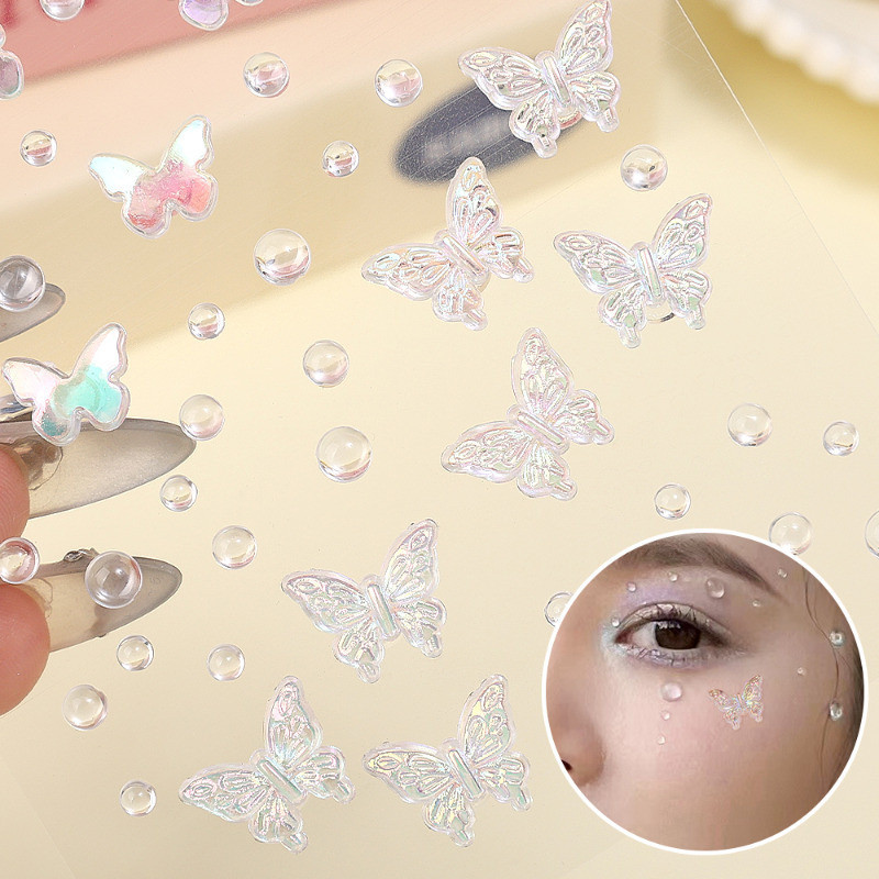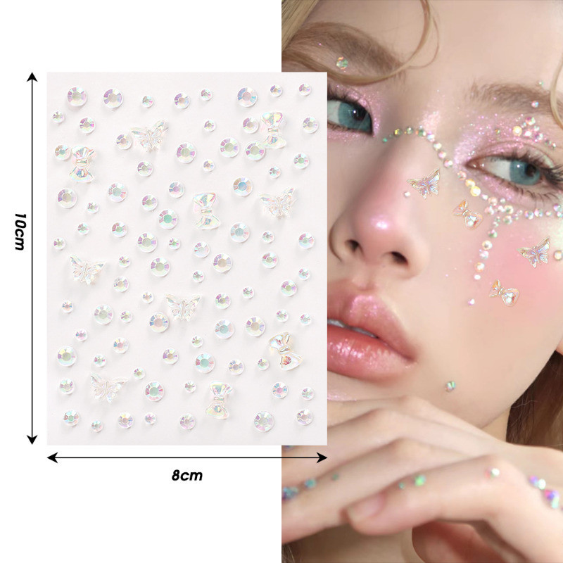 1/2 Sheets 3D Colorful Butterfly Crystal Diamond Stickers - DIY Eyes Body Rhinestones - Self-Adhesive Temporary Tattoo - Makeup Art Party Decoration - Face Shell Mermaid Patch
