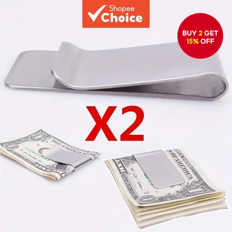 1/2 pcs Men's Stainless Steel Money Clip & Card Holder - Minimalist Cash & Credit Card Wallet, Metal Clamp