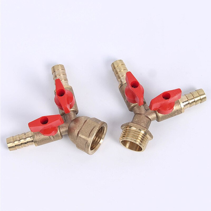 1/2" BSP Male Female Thread 3 Way Brass Ball Valve Y Shaped Pipe Fitting Connector 10mm Hose Barb