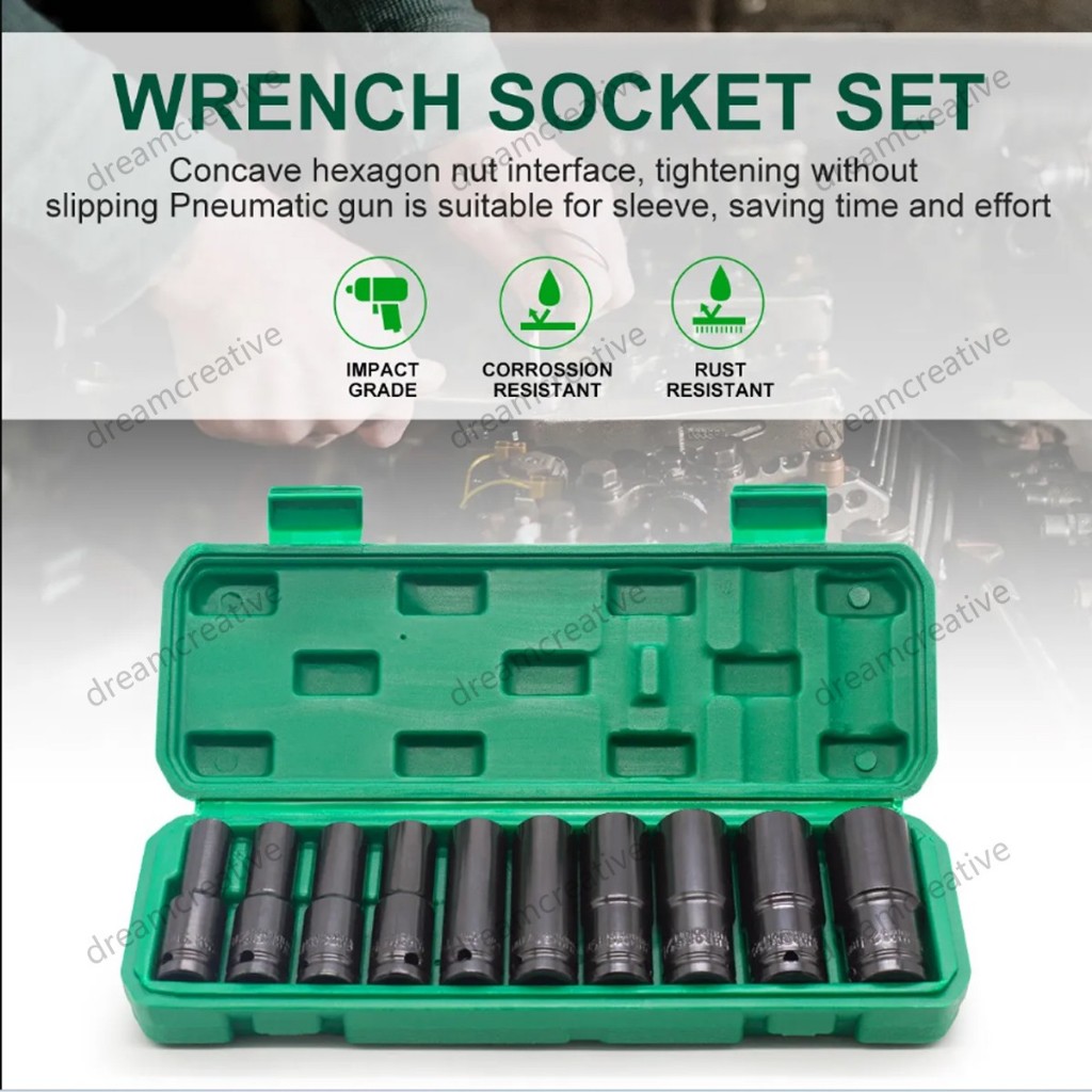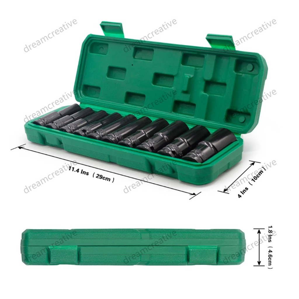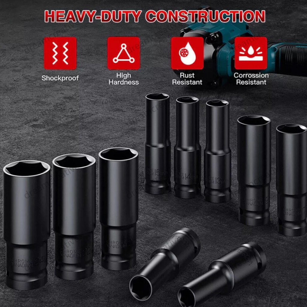 1/2Inch Drive 6-Point Impact Socket Set 10-Piece Metric Sizes 10-24mm Hex Socket Set impact wrench adapter Impact Wrench Socket Set with Hard Storage Box