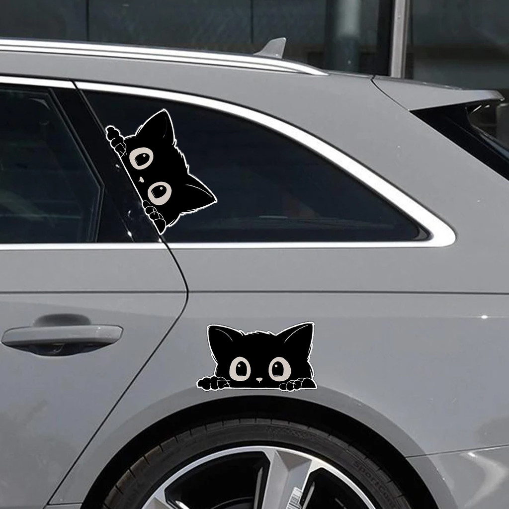 1/2Pcs Peeking Black Cat PVC Car Sticker - Funny Waterproof Decal for Auto Exterior Window Bumper Motorcycle Body Scratch Decoration