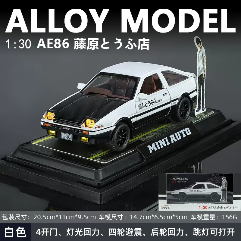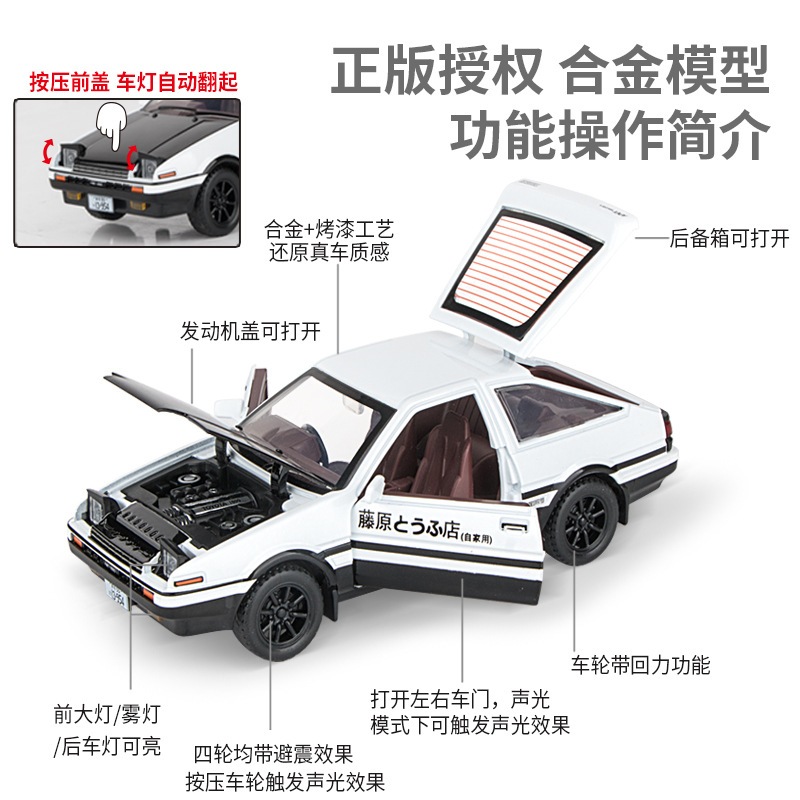 1:30 Initial D Toyota AE86 Car Models Alloy Diecast Toy Vehicle Doors Openable Auto Truck