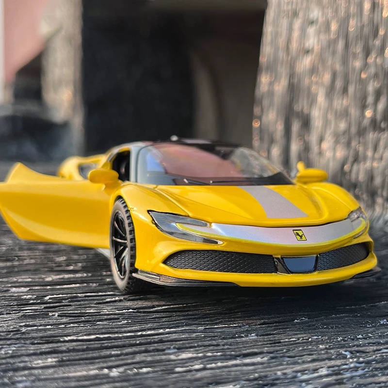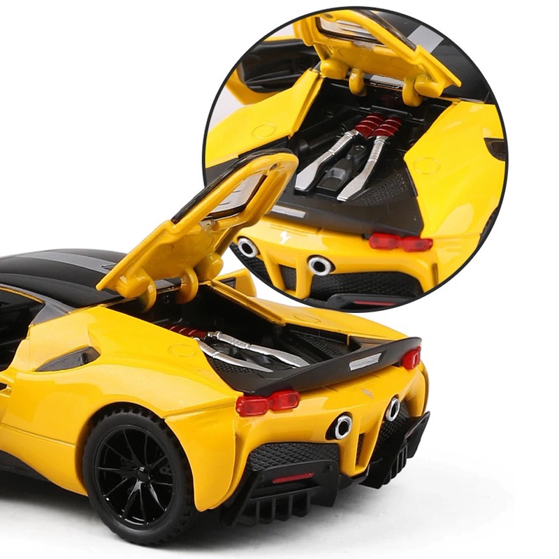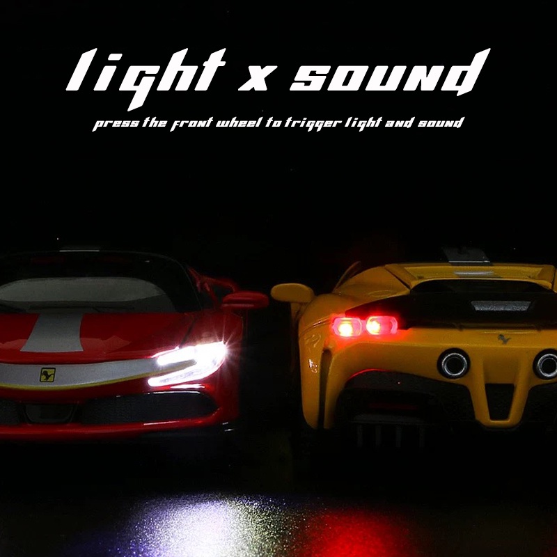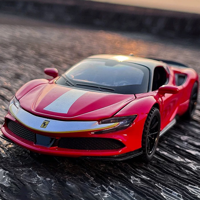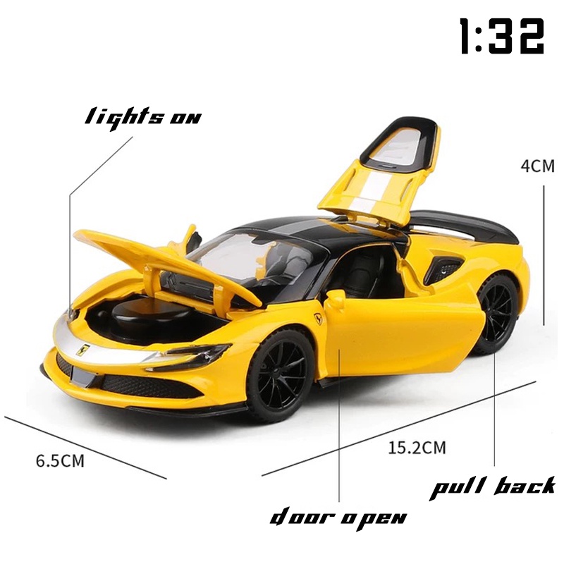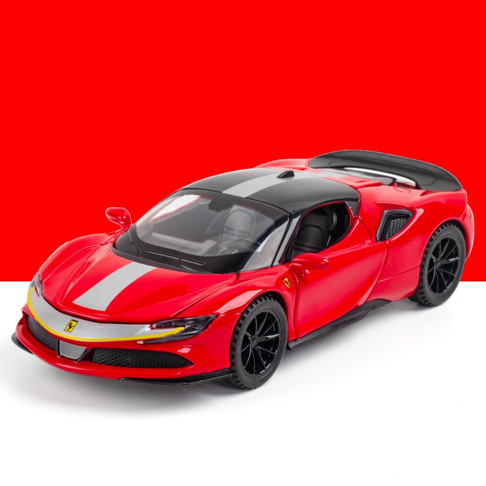 1:32 Scale Ferrari SF90 Alloy Car Model Diecast Car Sound Light Pull Back Car Lovers Collection Kids Birthday Gift Metal Boys Toys