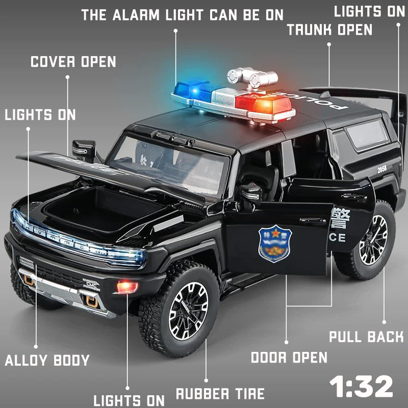 1:32 Scale Hummer EV Police Alloy Car Model Diecast Car Sound Light Car Lovers Collection Kids Birthday Gift Metal Boys Toys