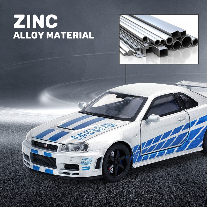 1:32 Scale Nissan GTR R34 Alloy Car Model Diecast Car Sound Light Car Lovers Collection Kids Birthday Gift Metal Boys Toys