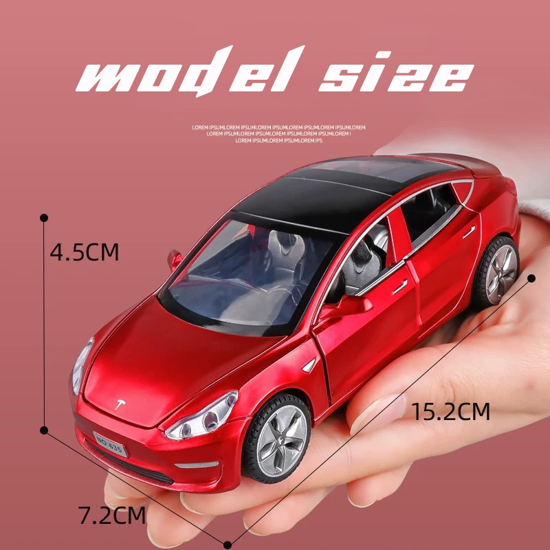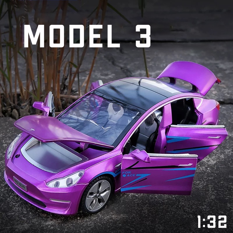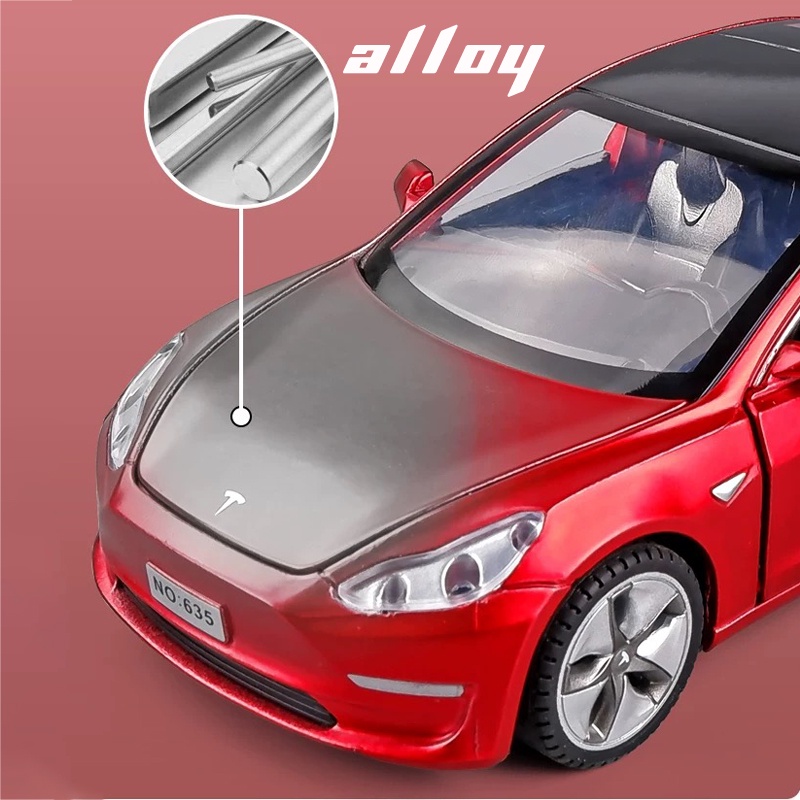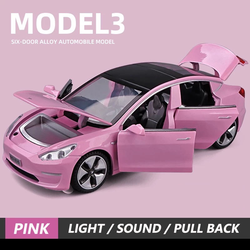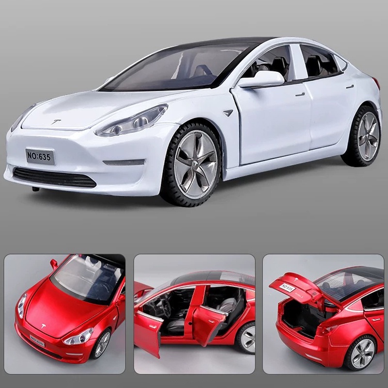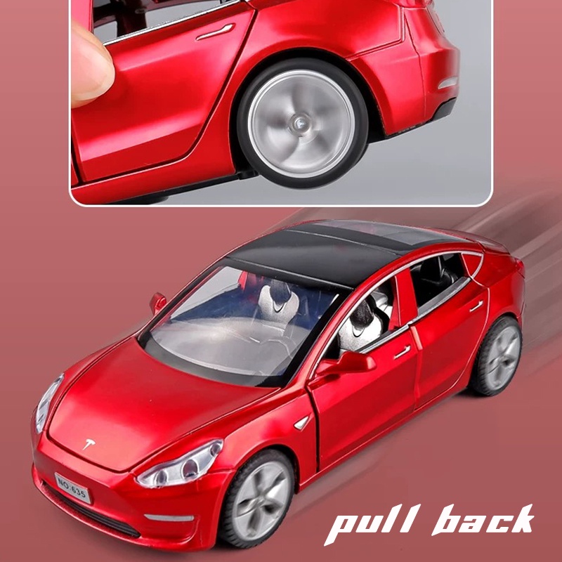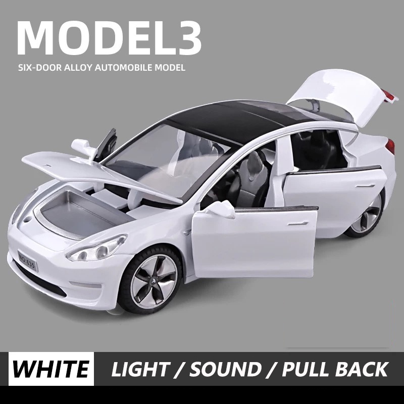 1:32 Scale Tesla Model 3 Alloy Car Model Diecast Car Sound Light Pull Back Car Lovers Collection Kids Birthday Gift Metal Boys Toys