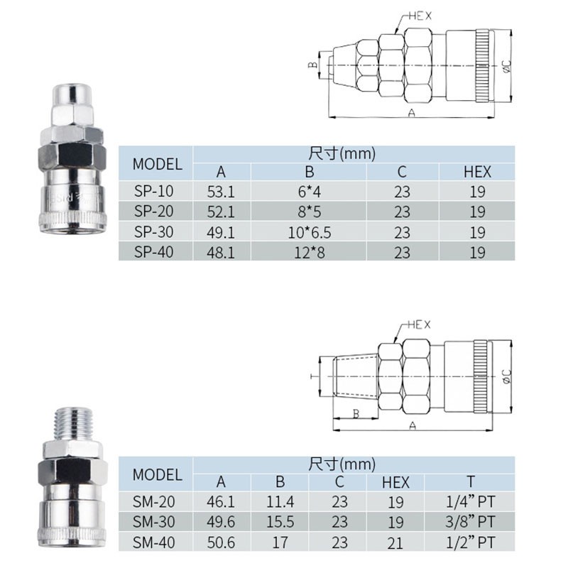 1/4 Air Realease Connector Socket Adapet Plug Fittings SP20 Quick Release Coupler Pneumatic Fitting Compressor Hose Coupling Pneumatic Fitting