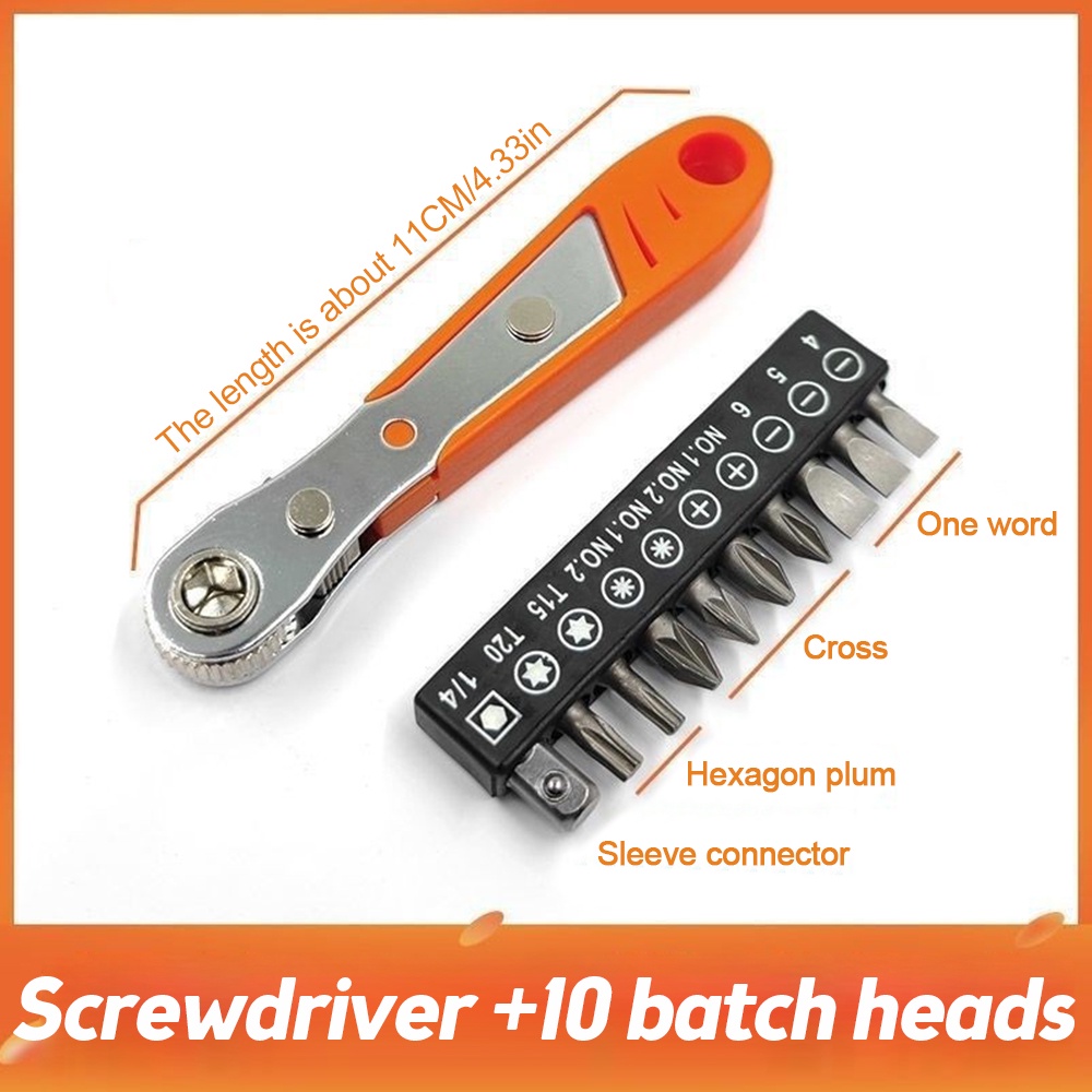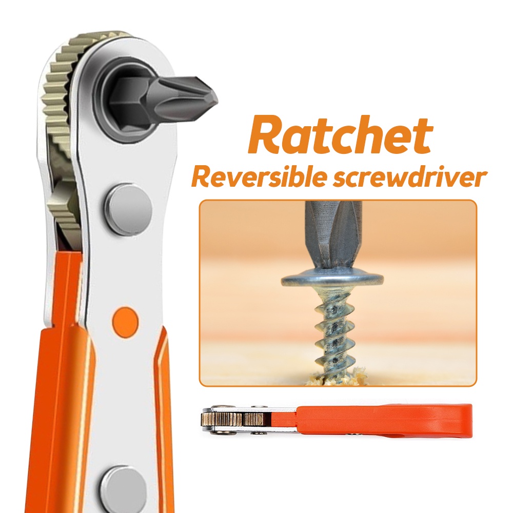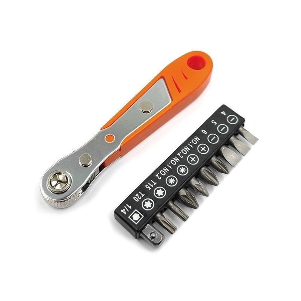 1/4 Ultra Low Profile Mini Ratchet Wrench Close Quarters Screwdriver Set with Drive Handle & Multi Hex Bits Set