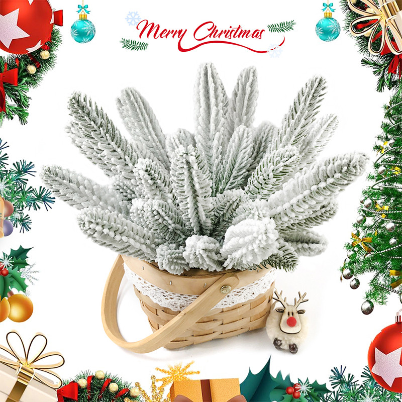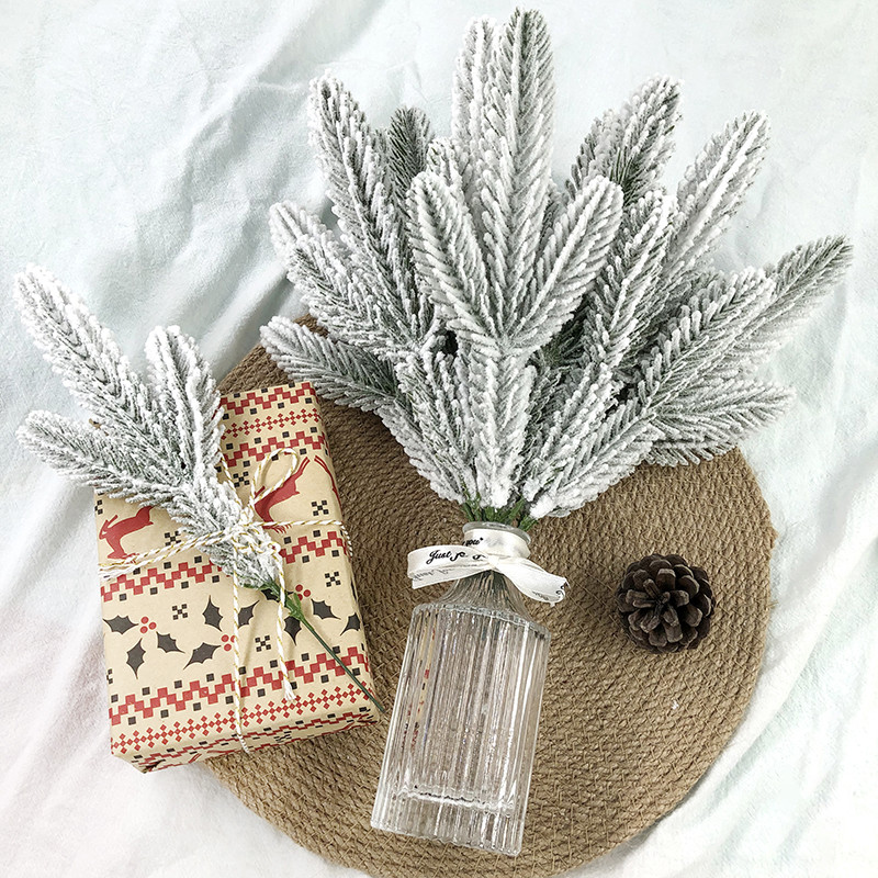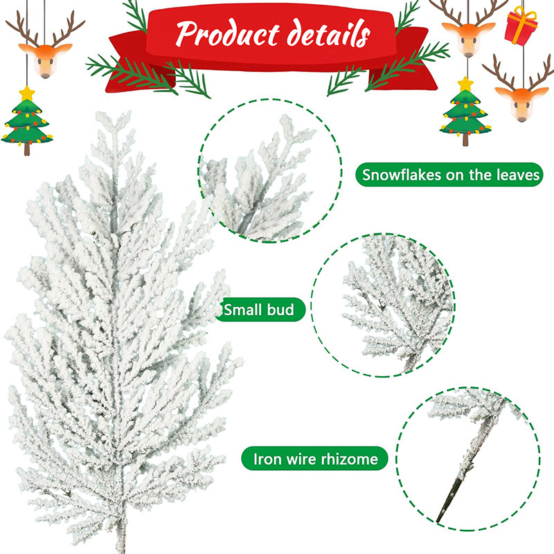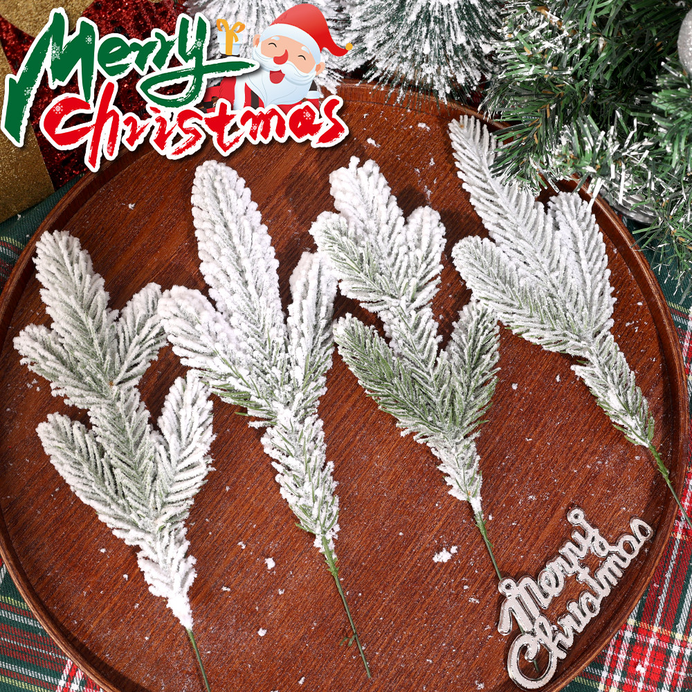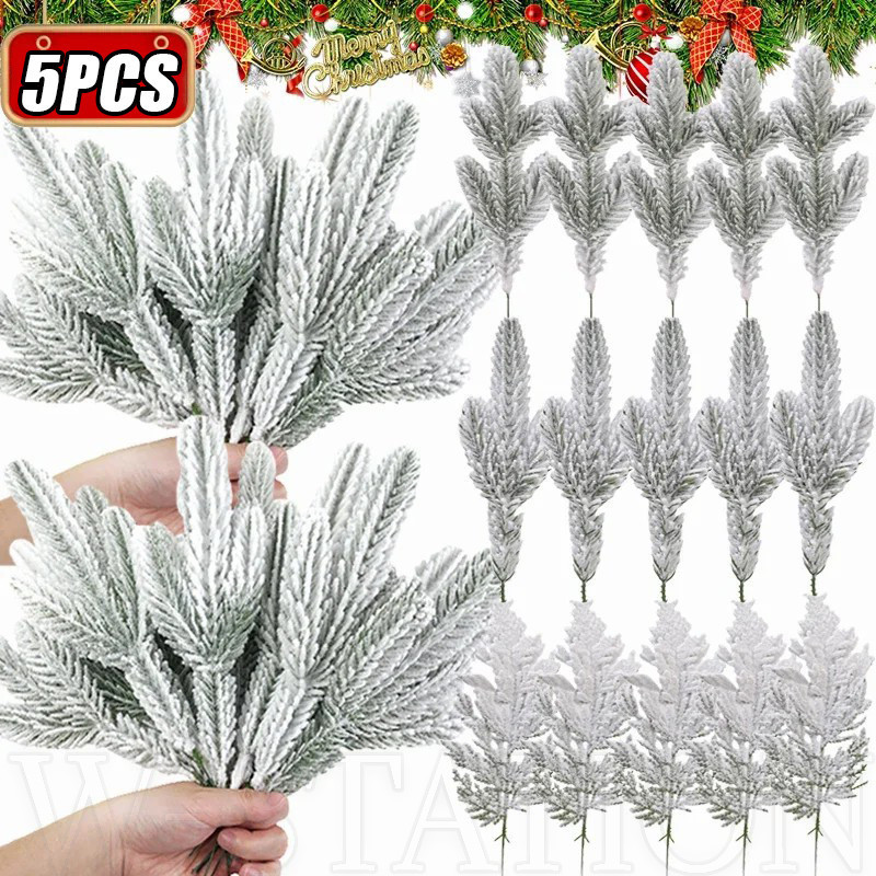 1/5/10Pcs Christmas White Snowflake Leaves - Artificial Snowy Pine Branches - Plastic Greenery Stems - Home Decoration - Xmas Tree DIY Crafts - New Year Party Supplies