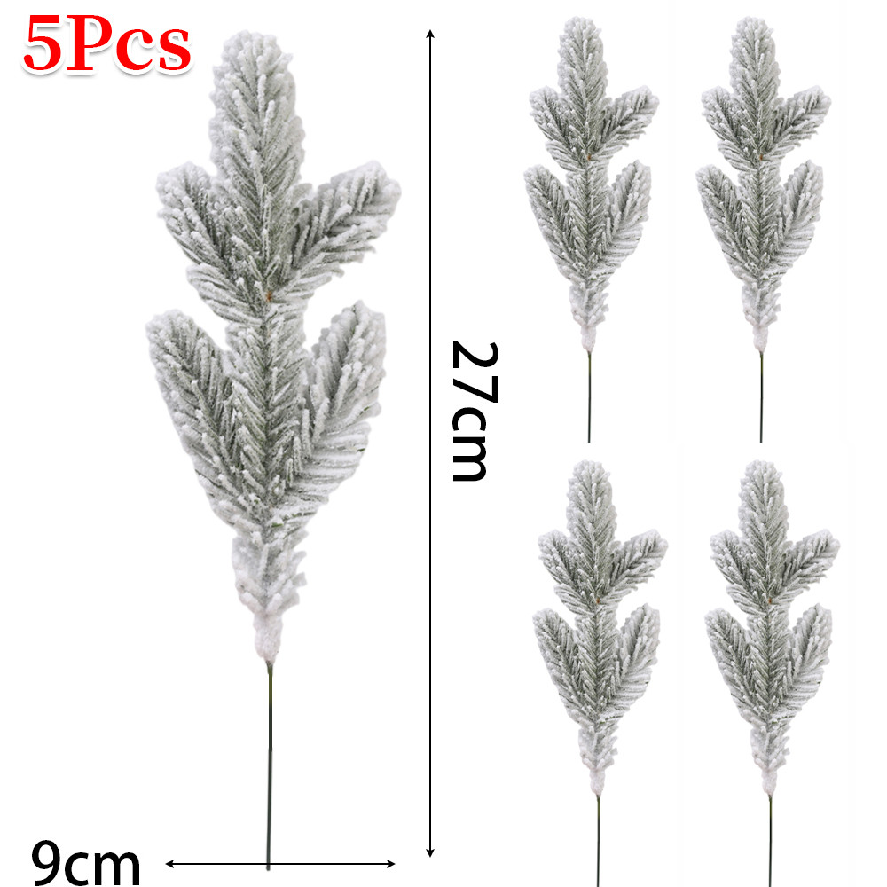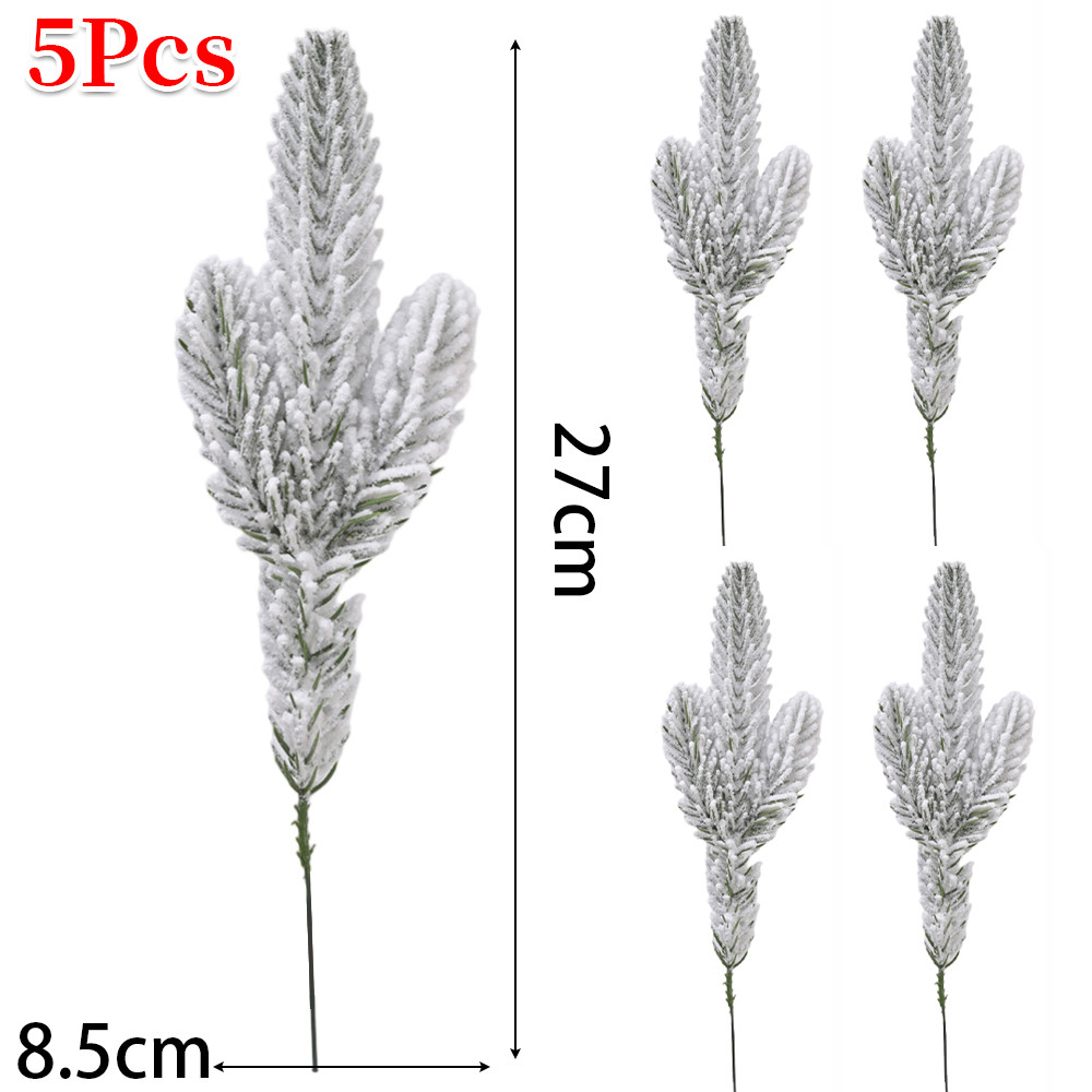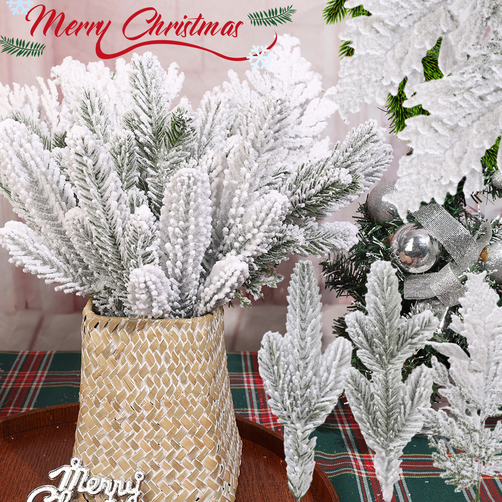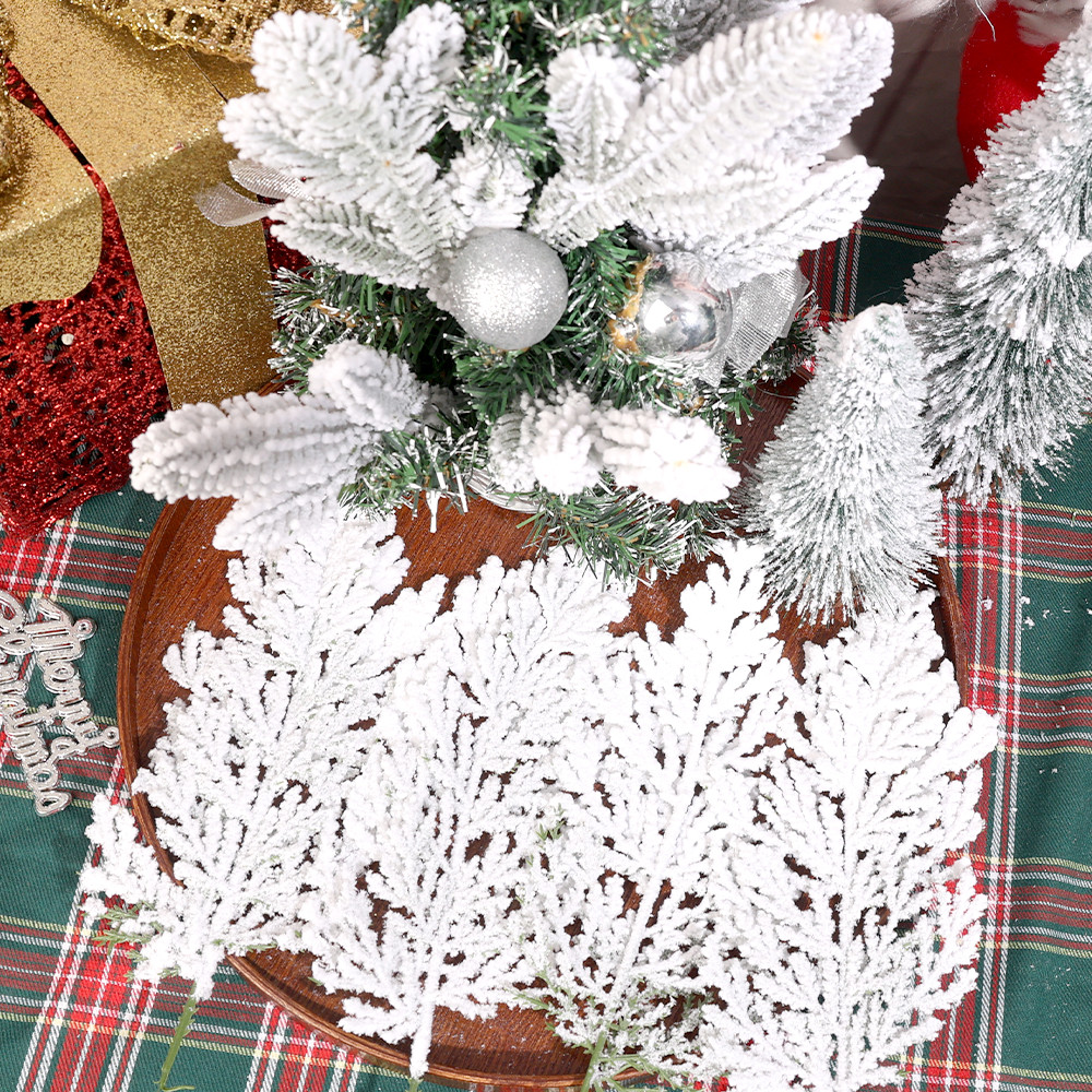 1/5/10Pcs Christmas White Snowflake Leaves - New Year Party Supplies - Home Decoration - Plastic Greenery Stems - Artificial Snowy Pine Branches - Xmas Tree DIY Crafts