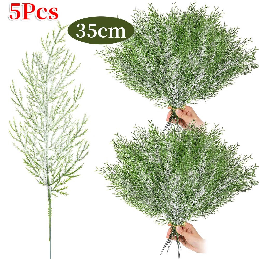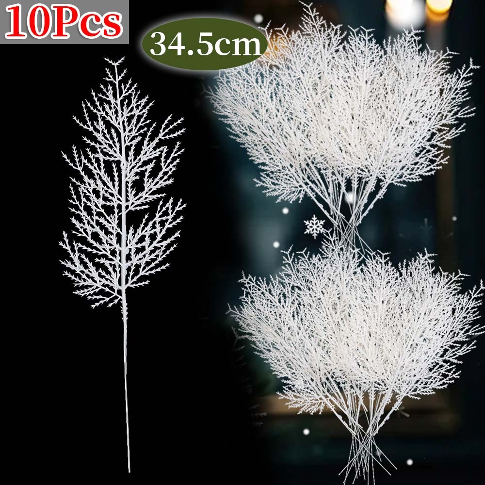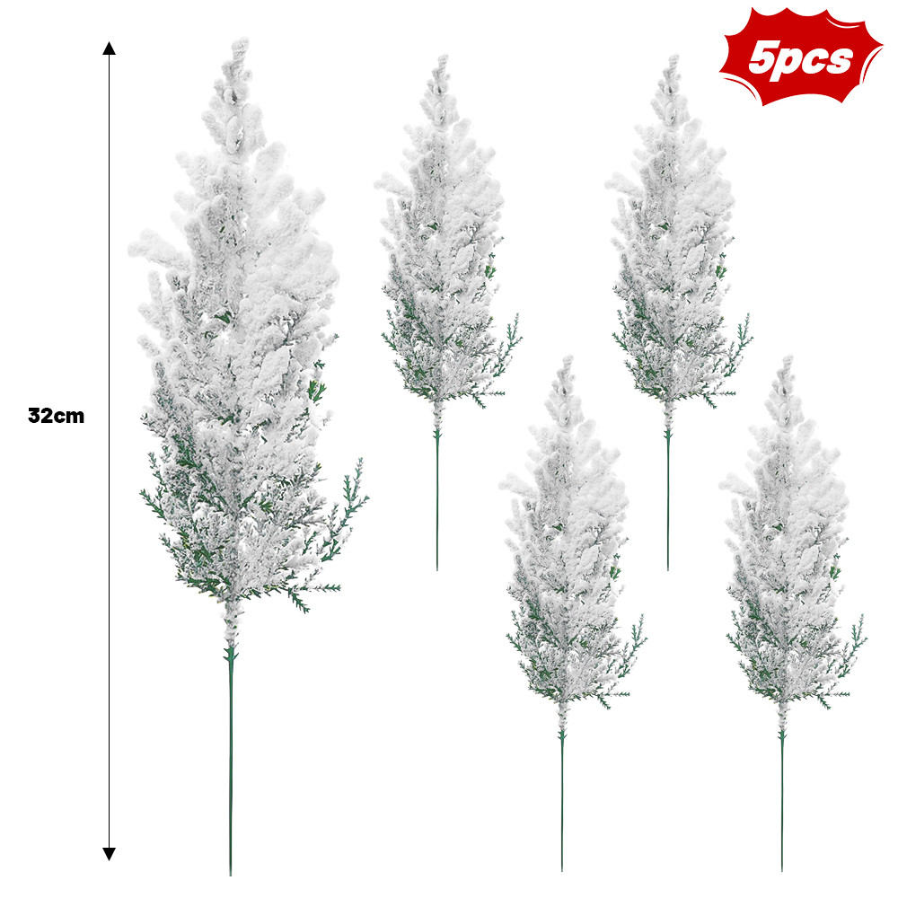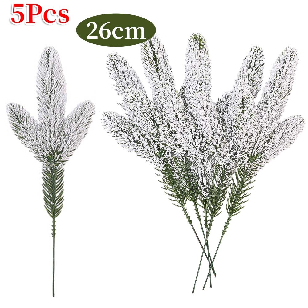 1/5/10Pcs Christmas White Snowflake Leaves - New Year Party Supplies - Home Decoration - Plastic Greenery Stems - Artificial Snowy Pine Branches - Xmas Tree DIY Crafts