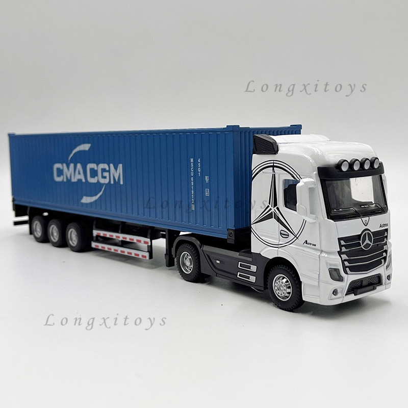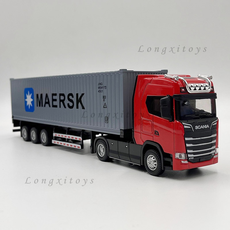 1:50 Diecast Truck Model Toy Scania S730 Tractor With Container Semi-Trailer Pull Back Sound Light Replica Children Gifts