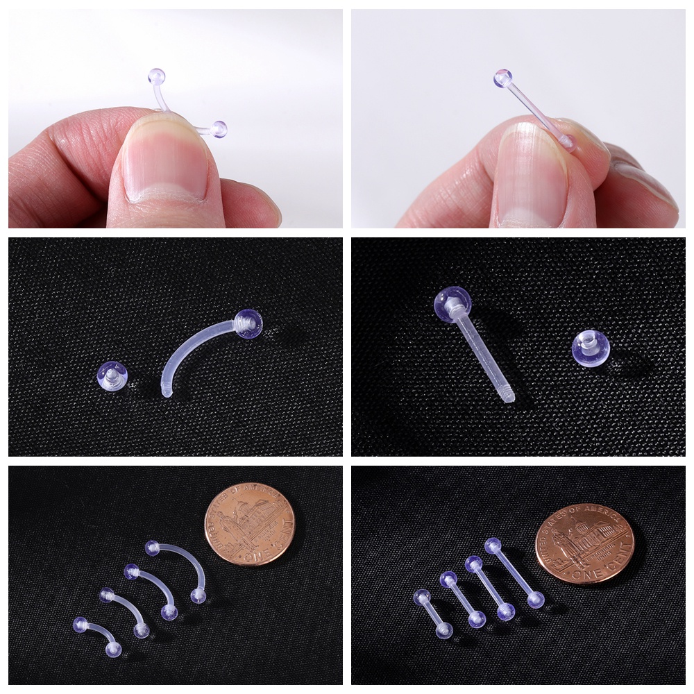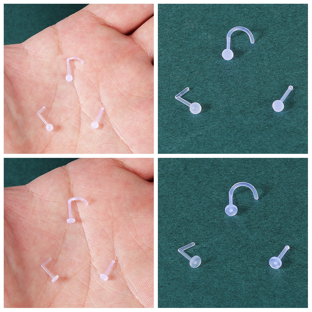 1-5Pcs Clear Acrylic Nose Septum Piercing Invisible Lip Stud Navel Ring Eyebrow Piercing Earrings Retainer Hidden Body Piercing