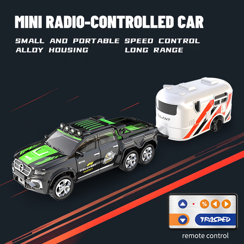 1/64 Mini RC Off-Road Vehicle Pick-up Truck toys for kids boys 6 years old 2.4G Remote Control Cars rechargeable with Light Alloy jeep Truck trailer