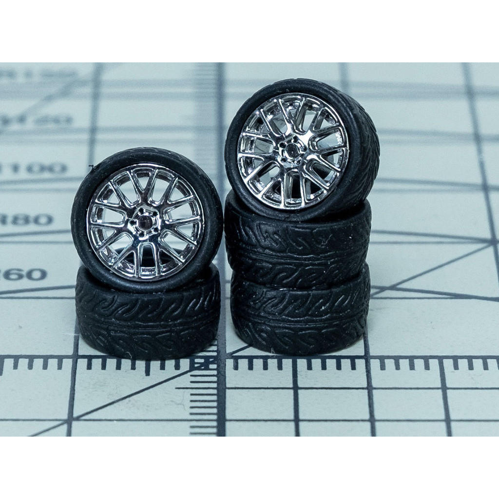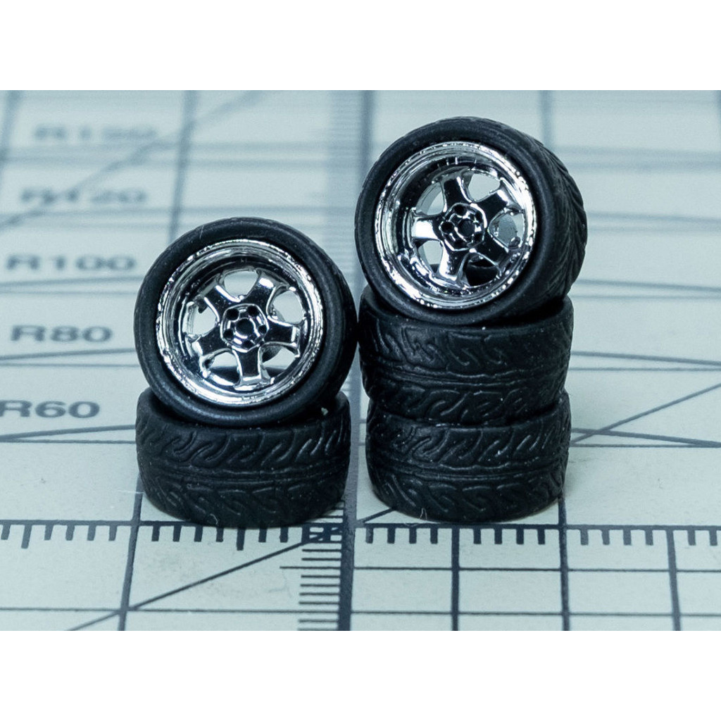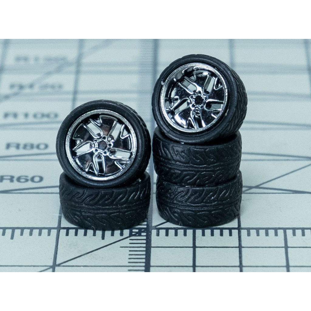 1/64 Scale Rubber Tires with Silver Electroplated Wheels (No Disc Brakes) for Hot Wheels, Tomica, MiniGT