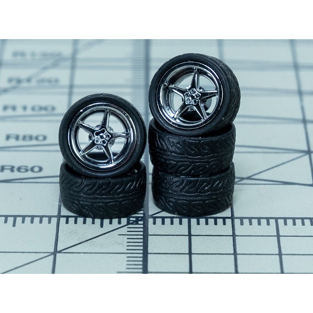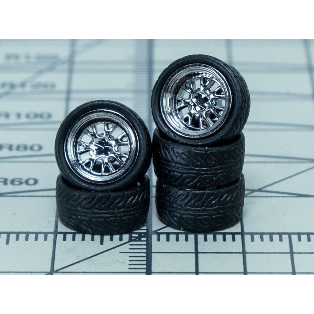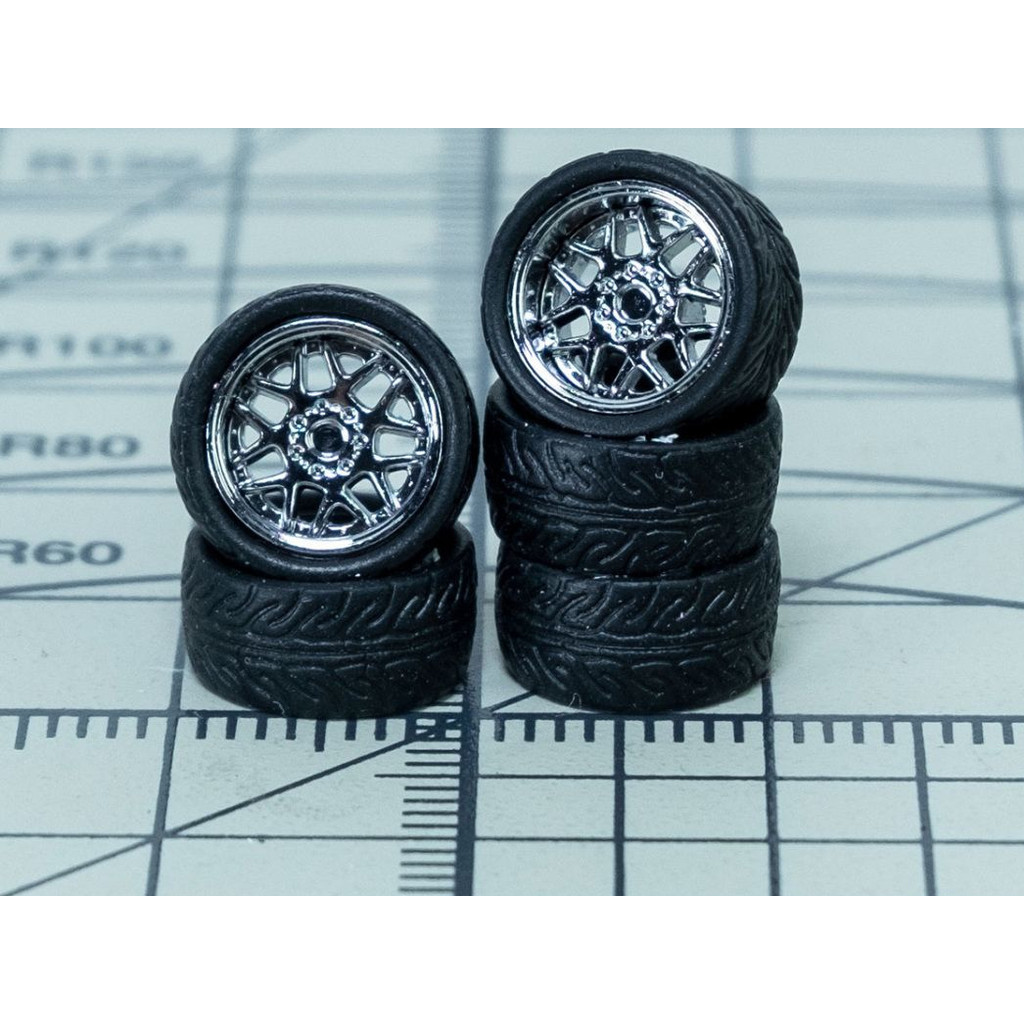 1/64 Scale Rubber Tires with Silver Electroplated Wheels (No Disc Brakes) for Hot Wheels, Tomica, MiniGT