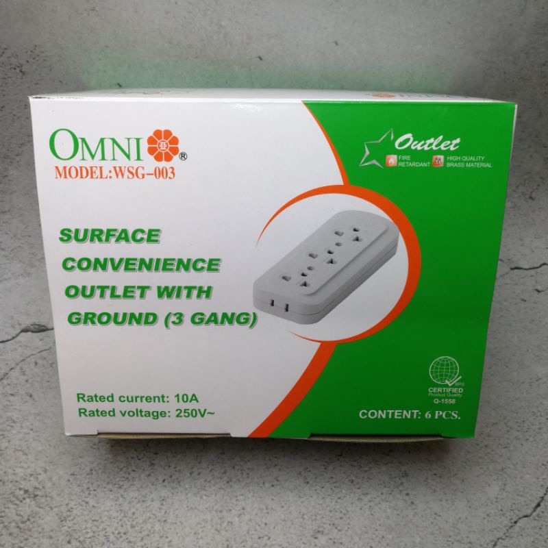 1 Box (6 pcs.) Omni 3 Gang Surface Convenience Outlet w/ Ground (WSG-003)