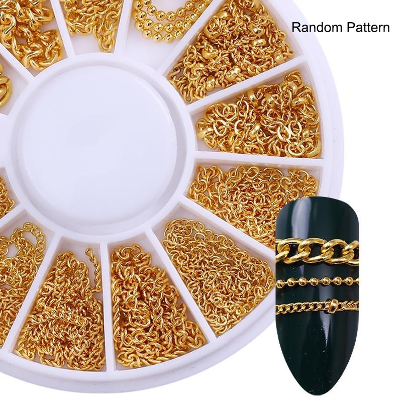 1 Box Three-dimensional Punk Style Gold Nail Chain Jewelry Turntable Metal Nail Decoration Accessories