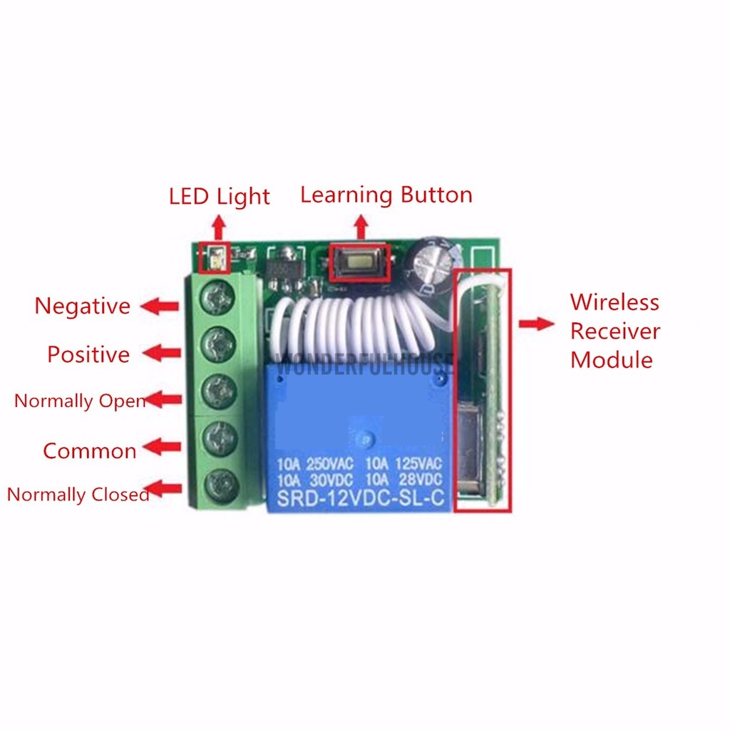 1 Channel 433MHz DC 12V 10A Wireless Relay RF Remote Control Switch Receiver 1CH